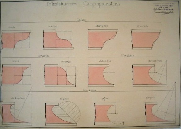 | Descrição: | Perfil e cortes de tipos de molduras compostas: golas, gargantas e escócias. |