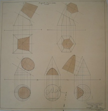 Projecções ortogonais de sólidos truncados: pirâmide e secções de um cone