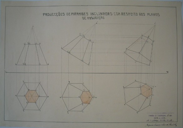 Projecções ortogonais de piramides inclinadas com respeito aos planos de projecção