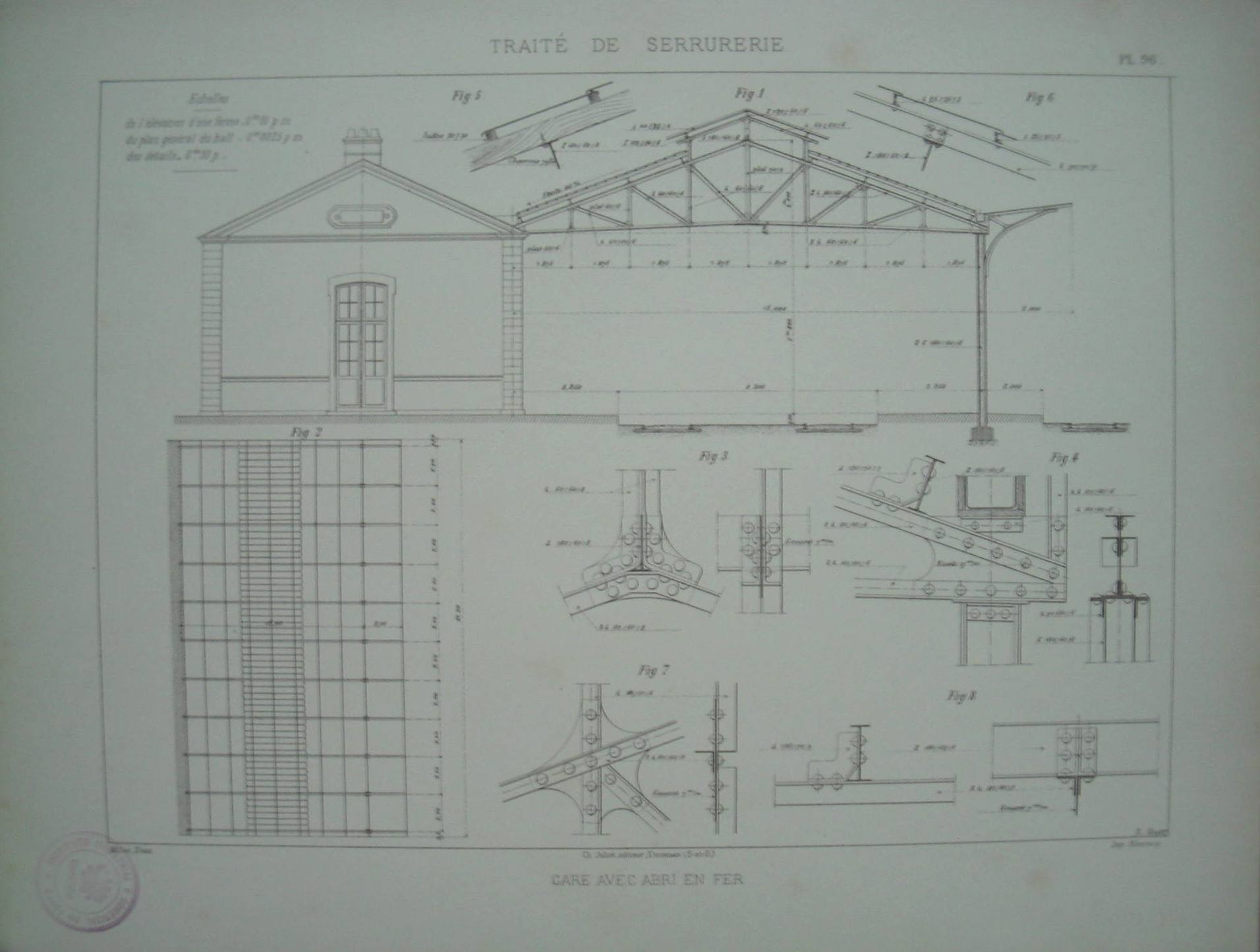 | Observações: | Estampa Pl. 96, pertencente à colecção "Traité de Serrurerie". A obra completa forma um atlas com 112 estampas. Millez. Dess Ch Juliot, éditeur. Dourdan (S-et-O). E. Gillet. Imp. Monrocq. |