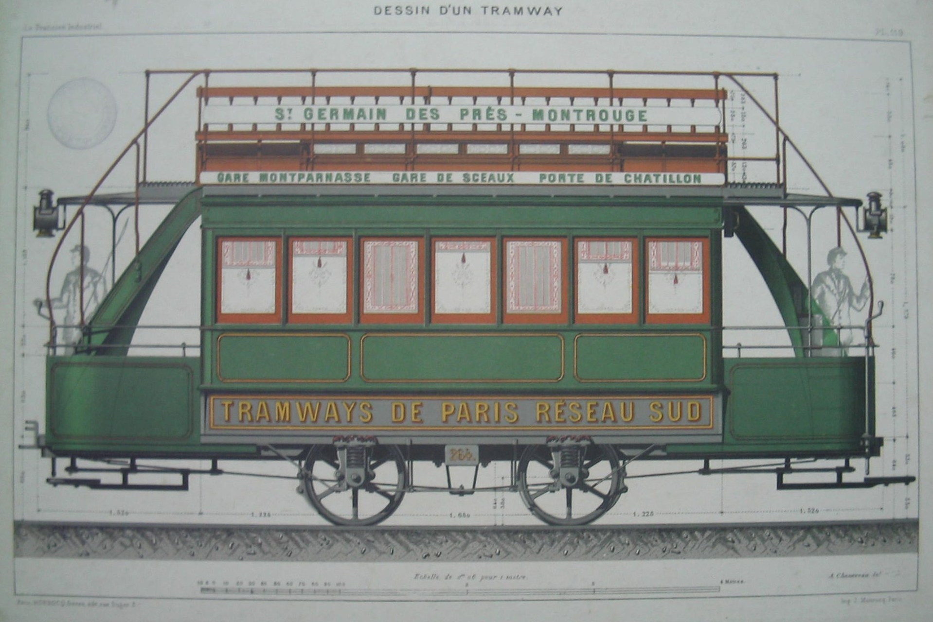 | Descrição: | Desenho de uma carruagem. A carruagem tem o número 264 com a seguintes descrição: St. Germain des Prés-Montrouge. Gare de Montparnase, Gare de Sceaux, Porte de Chatillon. Tramways de Paris Réseau Sud. Estampa PL.119 da colecção "Le Praticien Industriel" com o título "Dessin D'un Tramway". Mecânica n. 77 |