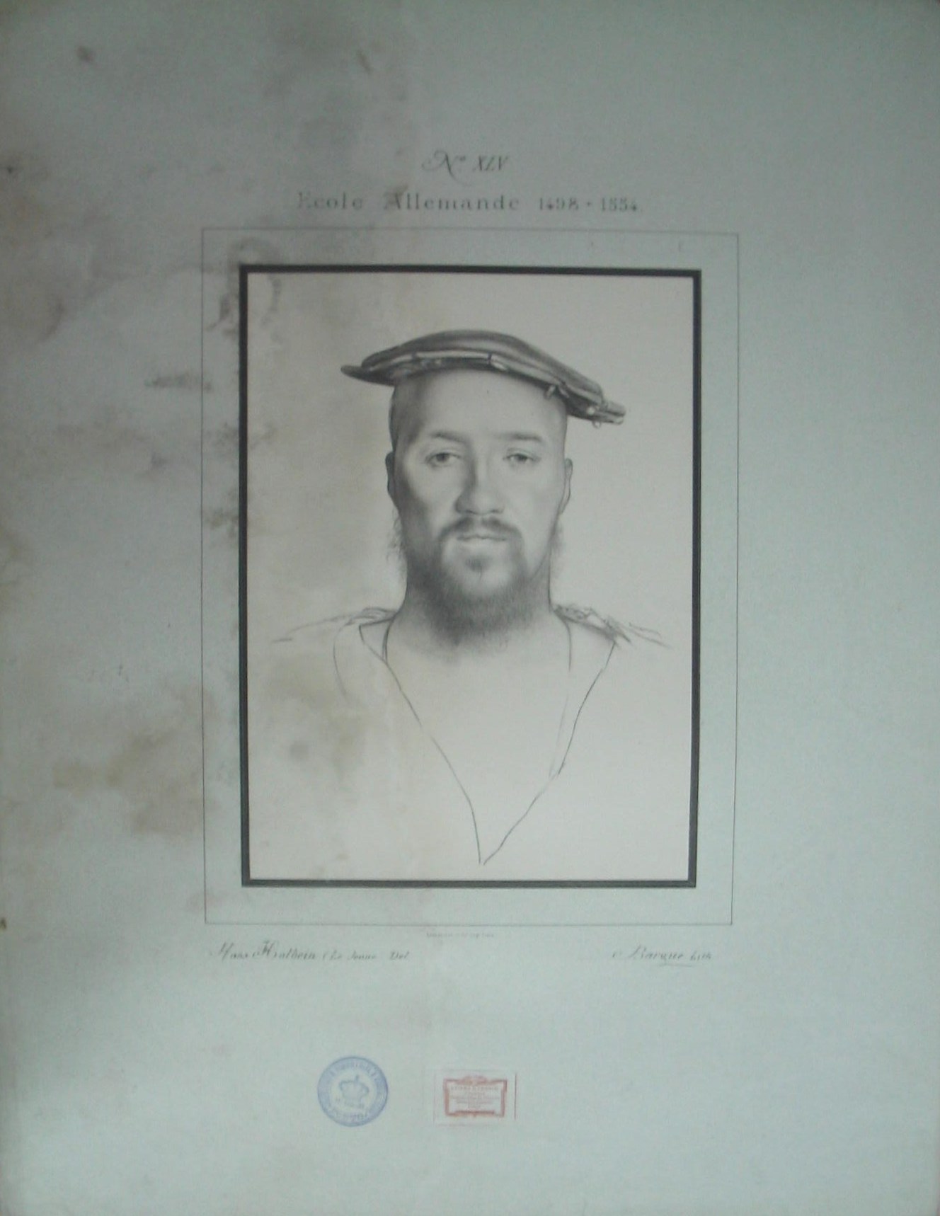 | Observações: | N. XLV Ecole Allemande 1498+1554 Lemmercier et C.ie. Imp. Paris Bargue Lith A estampa possui o carimbo da 17ª Cadeira do Instituto Industrial e Comercial do Porto, em vigor entre 1886 a 1918. A 17ª Cadeira era dividida em 3 partes, nomeadamente: 1ª parte: Desenho Linear e de Ornato; 2ª Parte:Desenho de figura e de paisagem do natural; 3ª Parte: Modelação; |