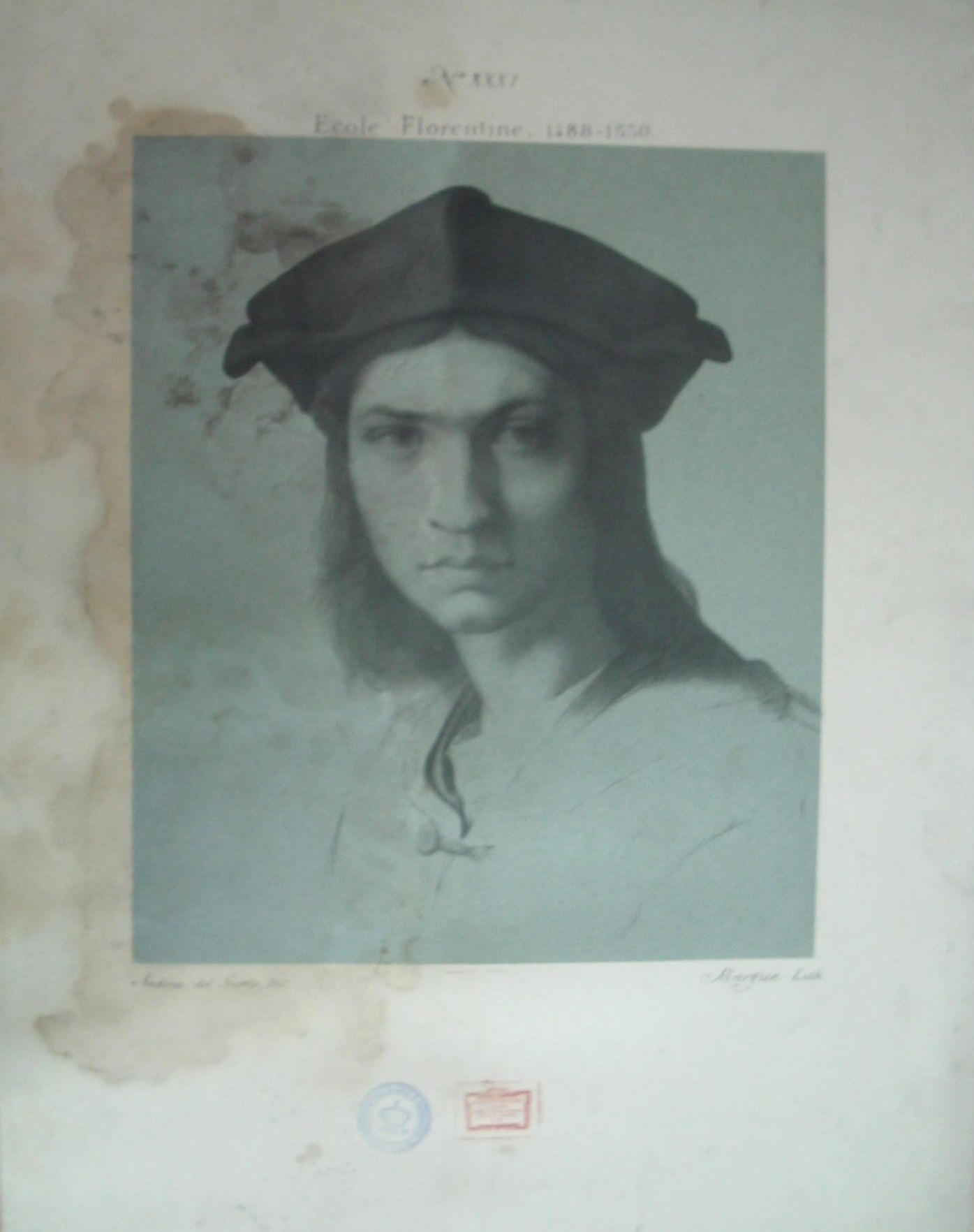 | Observações: | N. XXXI Ecole Florentine, 1488 + 1530; Lemercier et C.ie. Imp. Bargue Lith. A estampa possui o carimbo da 17ª Cadeira do Instituto Industrial e Comercial do Porto, em vigor entre 1886 a 1918. A 17ª Cadeira era dividida em 3 partes, nomeadamente: 1ª parte: Desenho Linear e de Ornato; 2ª Parte:Desenho de figura e de paisagem do natural; 3ª Parte: Modelação; |