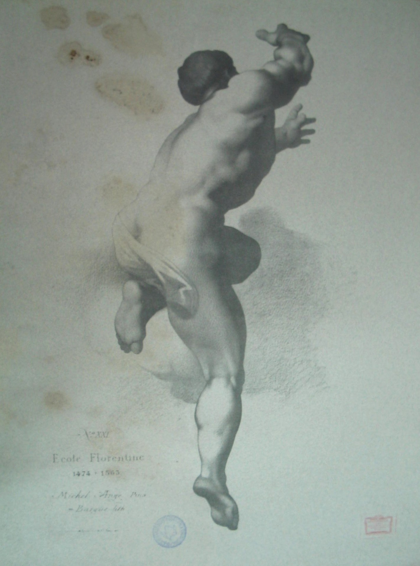 | Observações: | N. XXI Ecole Florentine 1474 + 1563 MichelAnge, Pinx Bargue, Lith. Lemmercier et C.ie, Paris. A estampa possui o carimbo da 17ª Cadeira do Instituto Industrial e Comercial do Porto, em vigor entre 1886 a 1918. A 17ª Cadeira era dividida em 3 partes, nomeadamente: 1ª parte: Desenho Linear e de Ornato; 2ª Parte:Desenho de figura e de paisagem do natural; 3ª Parte: Modelação; |