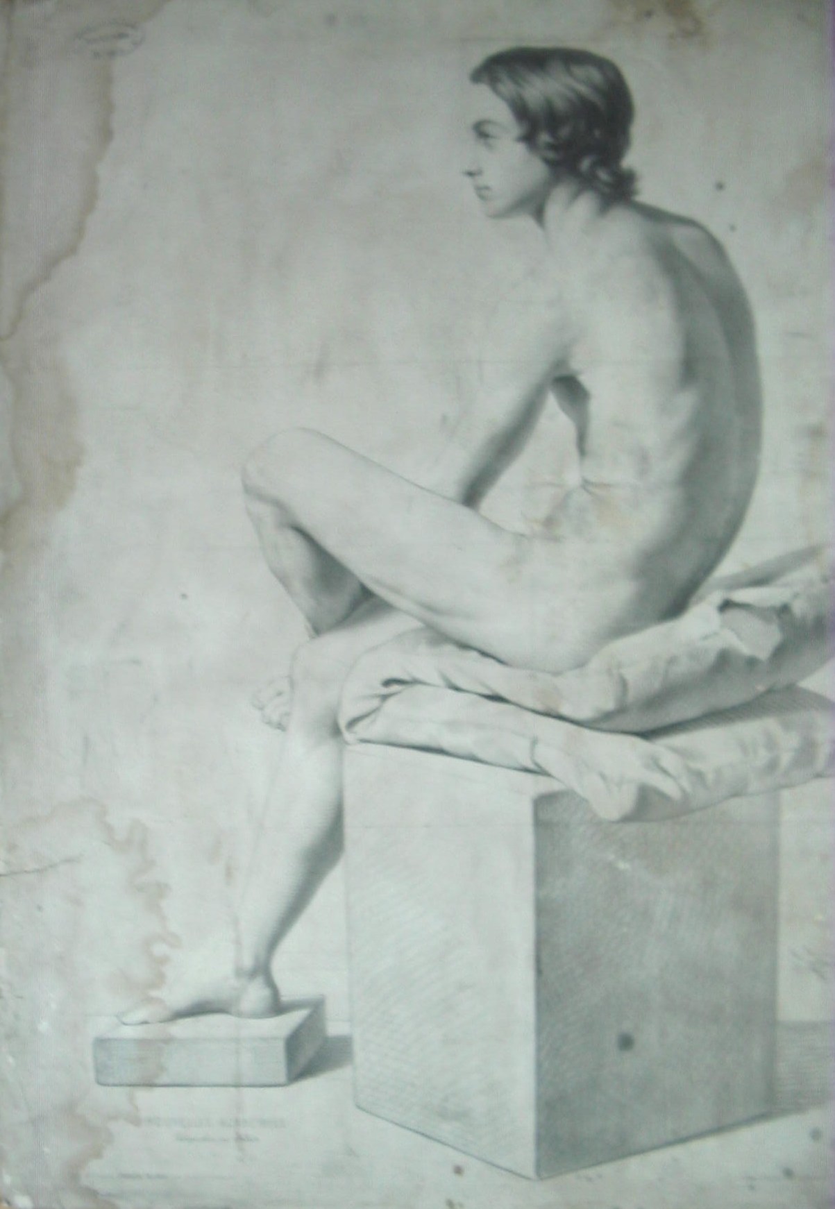 | Observações: | Nouvelles Académies Lithographiees par Julien N.1 Paris (M.en Aumont) François Delarue Succ Rue JJ Rousseau, 10 London, E. Gambart & Cº 25 Berners St. Oxf. St. A estampa possui o carimbo da cadeira de desenho da Escola Industrial do Porto, em vigor entre 1852 a 1864. |