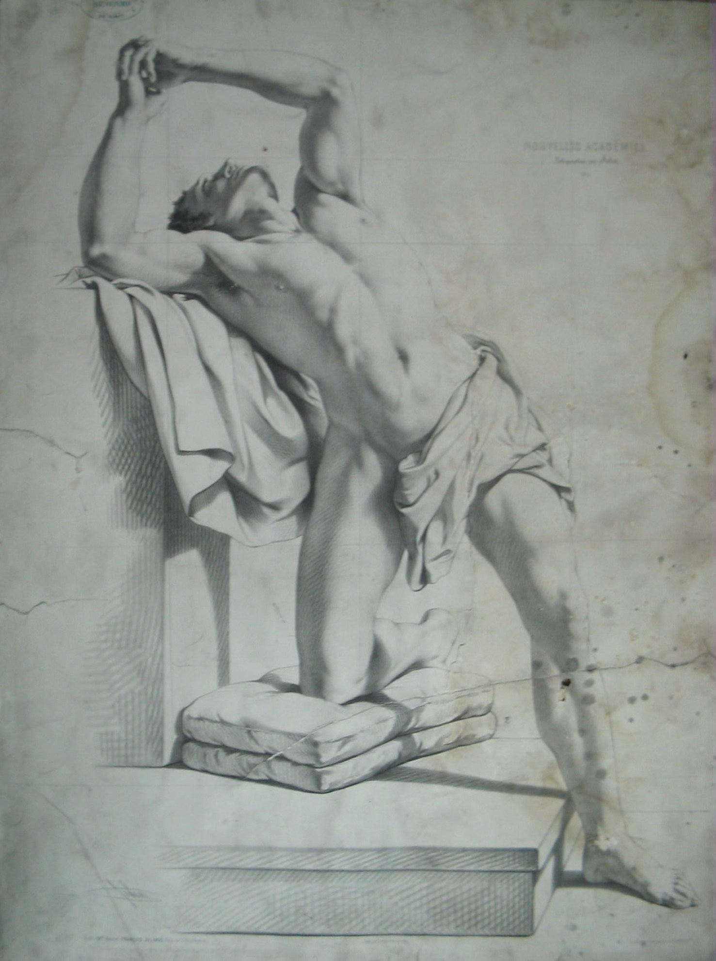 | Observações: | Nouvelles Académies Lithographiees par Julien N.9 Paris (M.on Aumont) François Delarue, Succ, Rue JJ Rousseau, 10. Imp par Lemercier, à Paris. London, E. Gambart & Cº 25 Berners St. Oxf. St. A estampa possui o carimbo da cadeira de Desenho pertencente à Escola Industrial do Porto, em vigor entre 1852 a 1864. No verso da estampa está assinada, a lápis, por: José Ferreira (aluno??) |