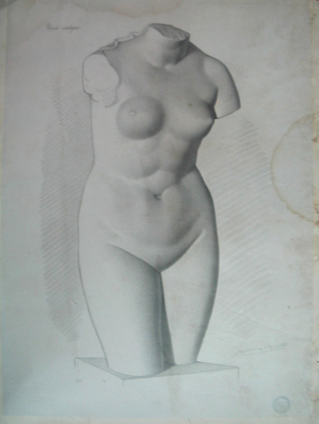 | Descrição: | A estampa representa um torso feminino. A estampa possui a seguinte legenda: "Torse Antique", e tem inscrito o número 23. |