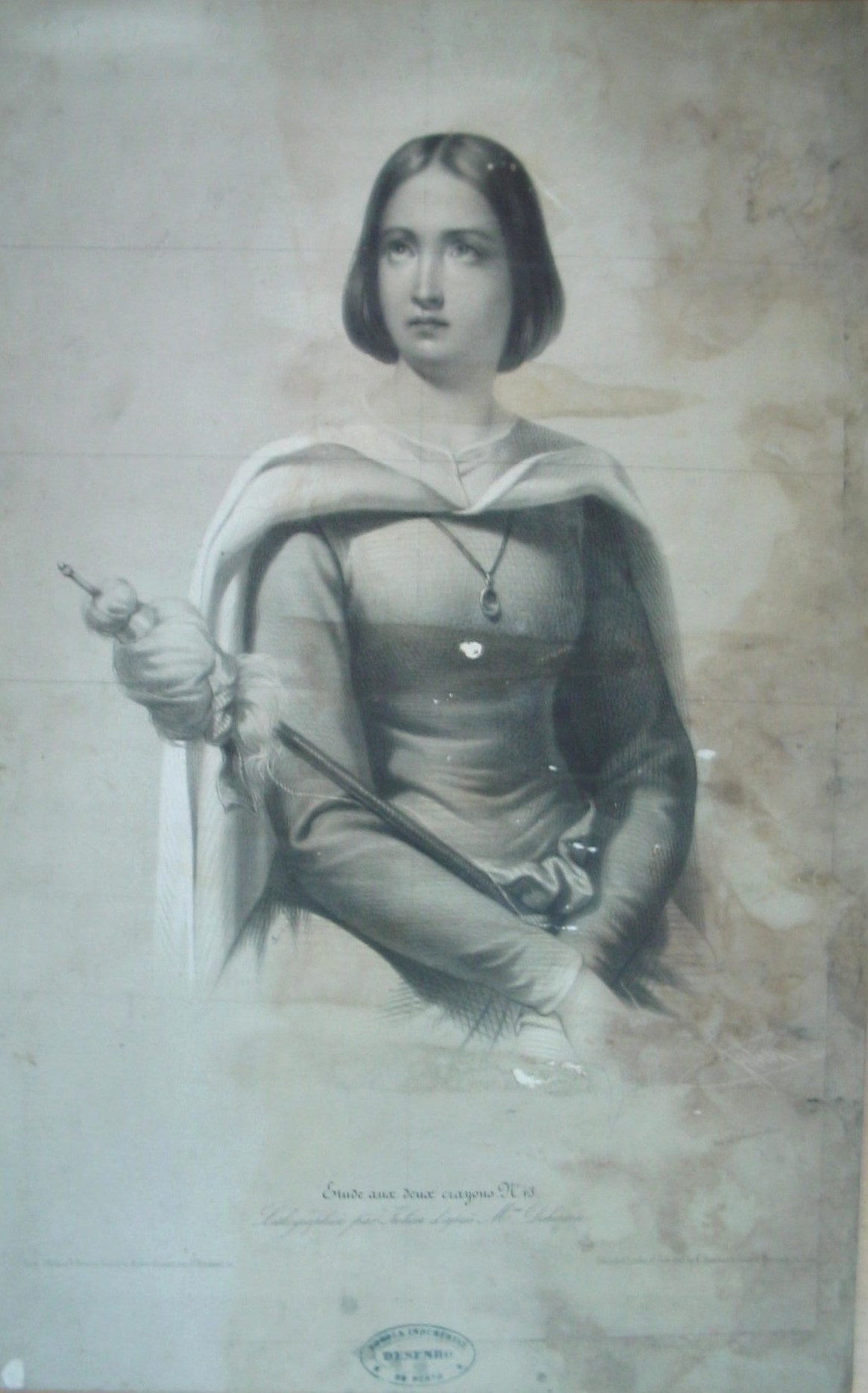 | Observações: | Étude aux deux crayons. N.43 Lithographiées par Julien d'aprés Mme Dehérain Paris, J. Bulla et F. Delarue, Succ de la Maison Aumont, rue JJ.Rousseau, 10. Published, London, 15 June 1843 by E. Gambart & Junin 12, Denmark, Sk. Soho. Imp. par Lemercier à Paris. A estampa possui o carimbo da cadeira de Desenho da Escola Industrial do Porto. A estampa foi traçada, a lápis, por linhas paralelas e perpendiculares, para possivel estudo. |