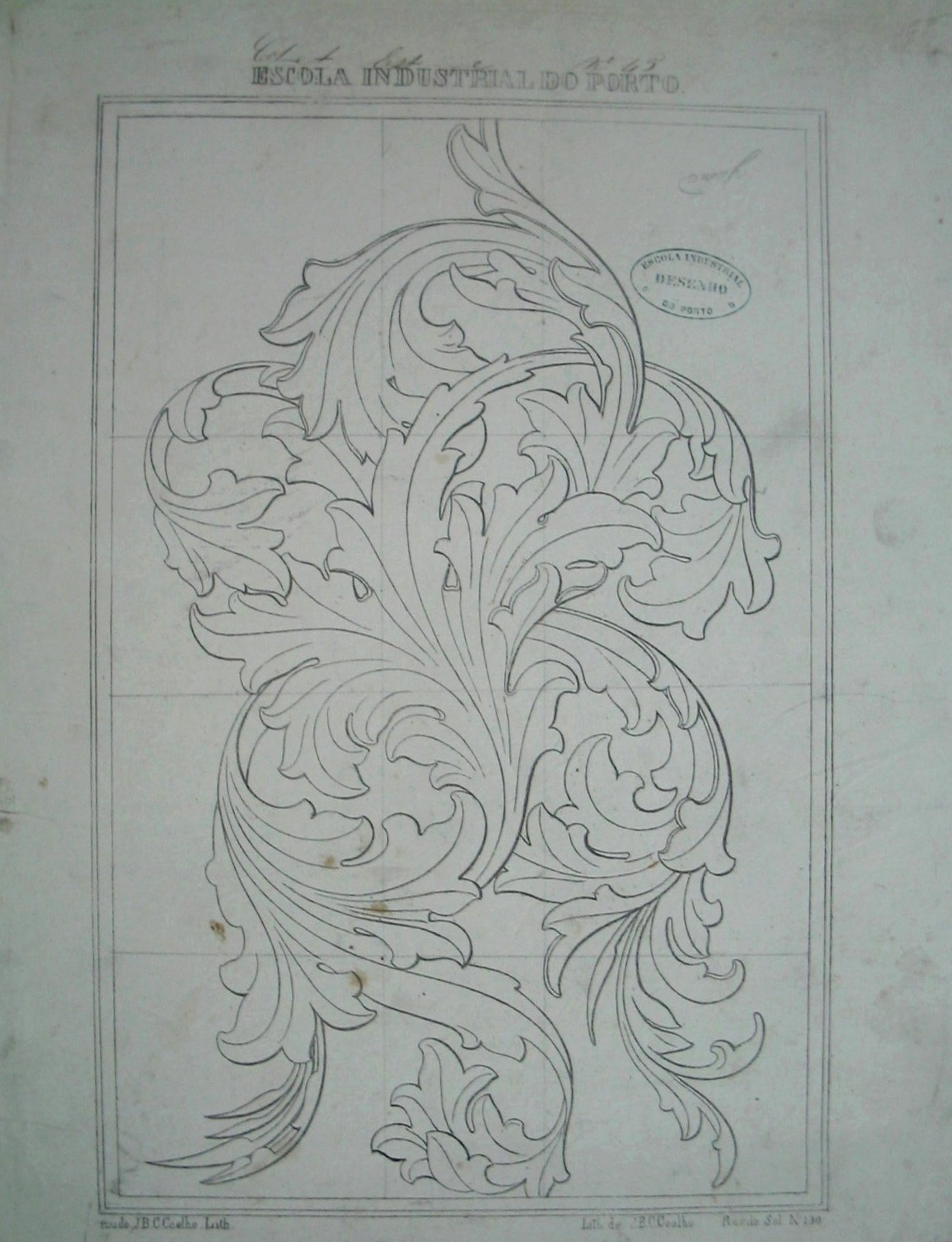 | Observações: | Col. A; Est. e; Nº. 45. Escola Industrial do Porto; mudo, J.B.C.Coelho. Lith. Lith. de J.B.C.Coelho Rua do Sol, n.130. A estampa possui o carimbo da cadeira de Desenho da Escola Industrial do Porto, em vigor entre 1852 a 1864. Na estampa está escrito a lápis, o nome de: João, supostamente seria aluno. |