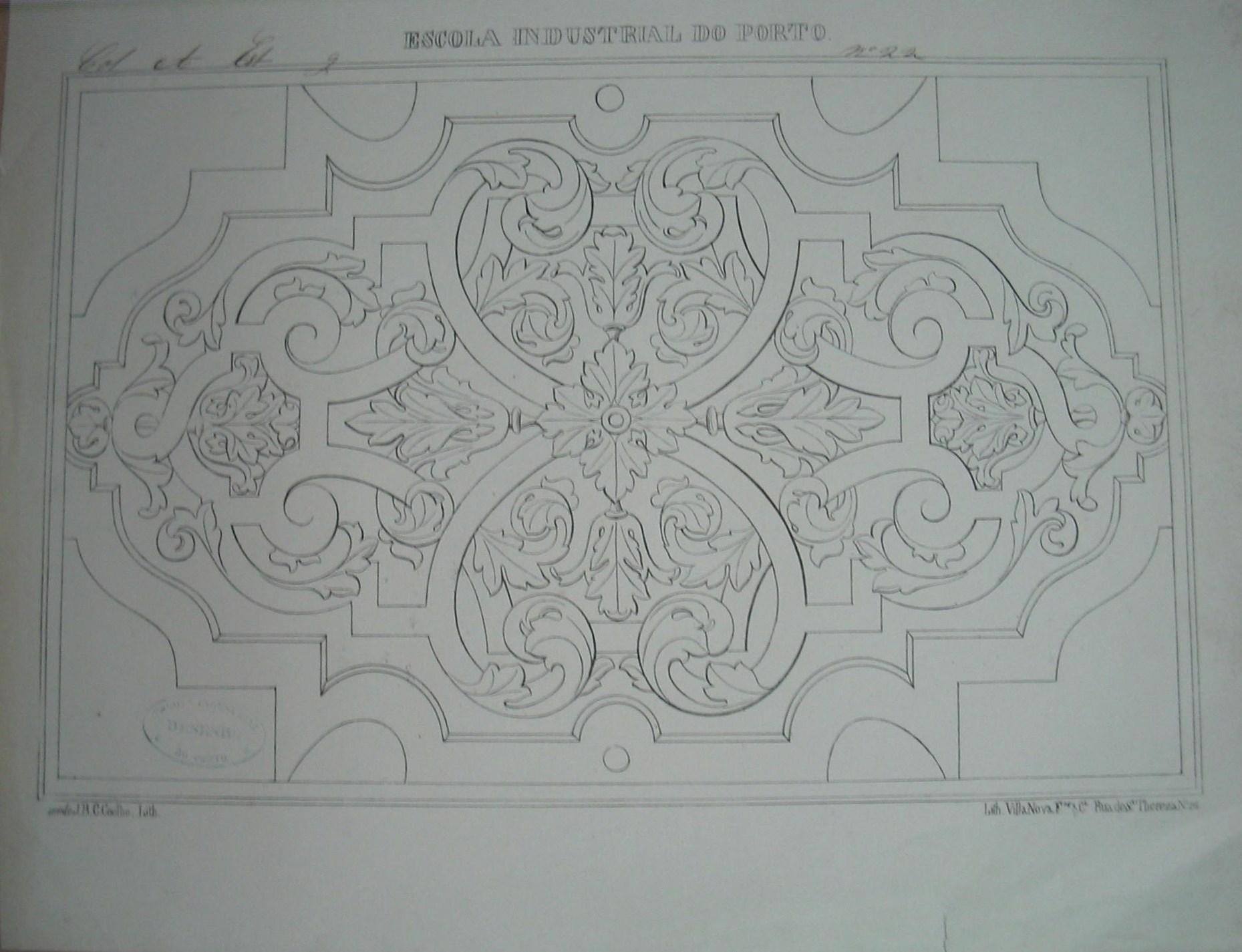 | Observações: | Escola Industrial do Porto; Col. A; Est. G; n. 22 mudo, J.B.C.Coelho. Lith. Lith. Villa Nova. F.os & Cª. Rua de Stª Thereza, Nº. 26. A estampa possui o carimbo da cadeira de Desenho da Escola Industrial do Porto, em vigor entre 1852 a 1864. |