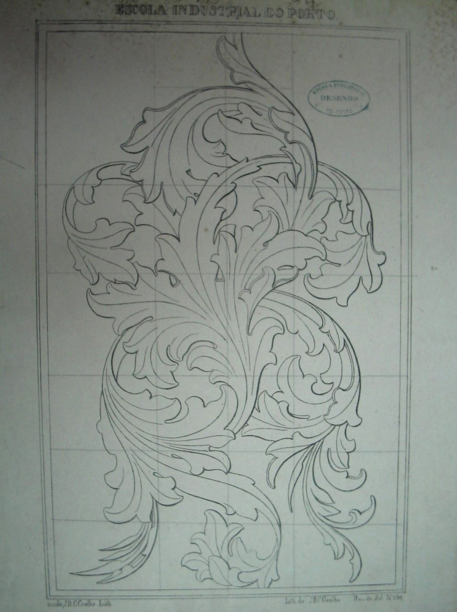 | Observações: | Col.A; Est. e; N. 58; Escola Industrial do Porto; mudo, J.B.C.Coelho. Lith. Lith de J.B.C.Coelho. Rua do Sol, N. 130. A estampa possui o carimbo da cadeira de Desenho da Escola Industrial do Porto; Sobre a figura da estampa foram traçadas, a lápis, linhas verticais e horizontais, para possivel estudo. |