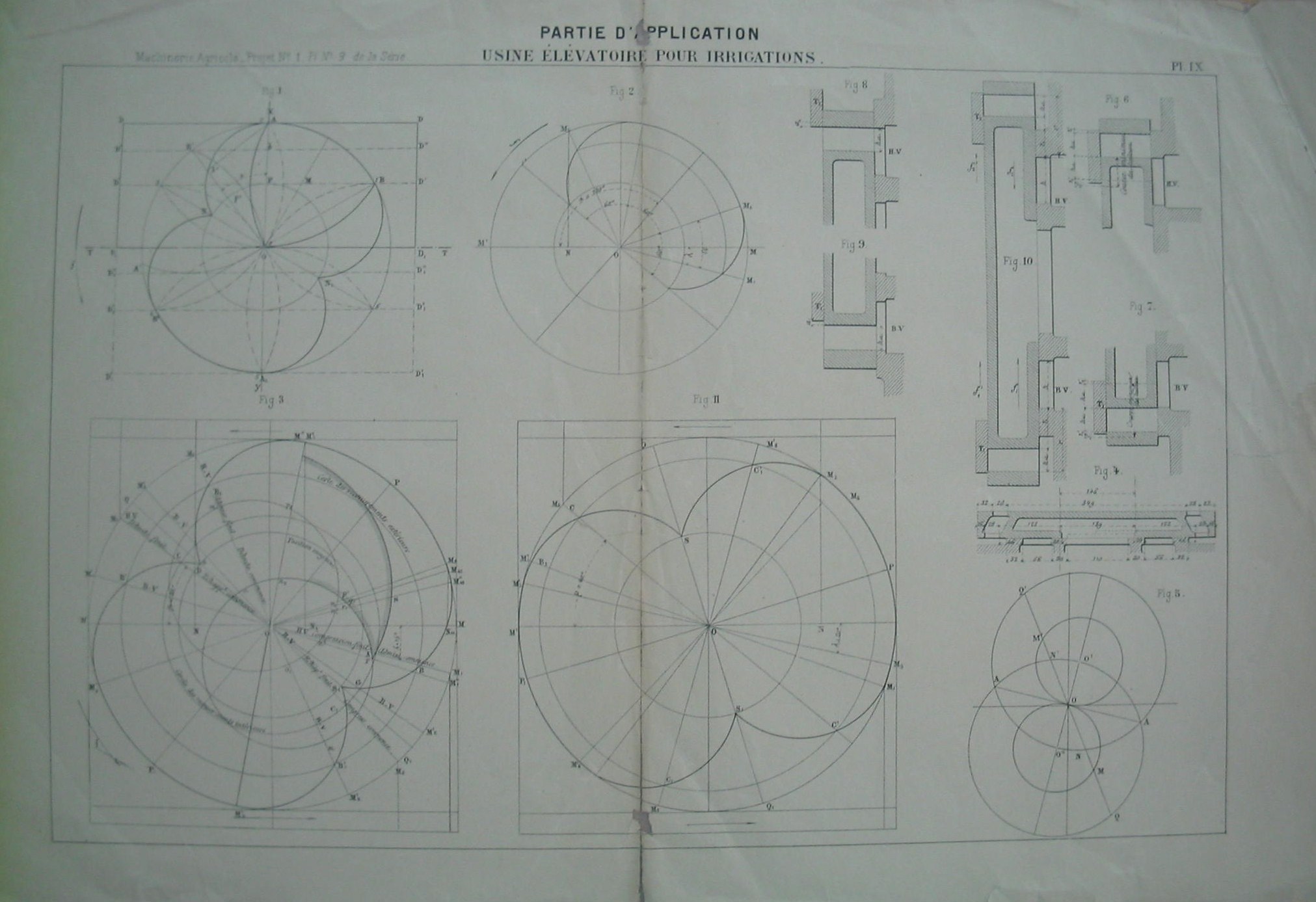 | Observações: | PL.IX Partie D'Application Usine Èlévatoire pour Irrigations. Machinerie Agricole-Projet Nº1, Pl Nº9 de la Sèrie. No verso da estampa tem o carimbo da biblioteca do Instituto Industrial do Porto, em vigor entre 1864 a 1886 e de 1933 a 1974. |