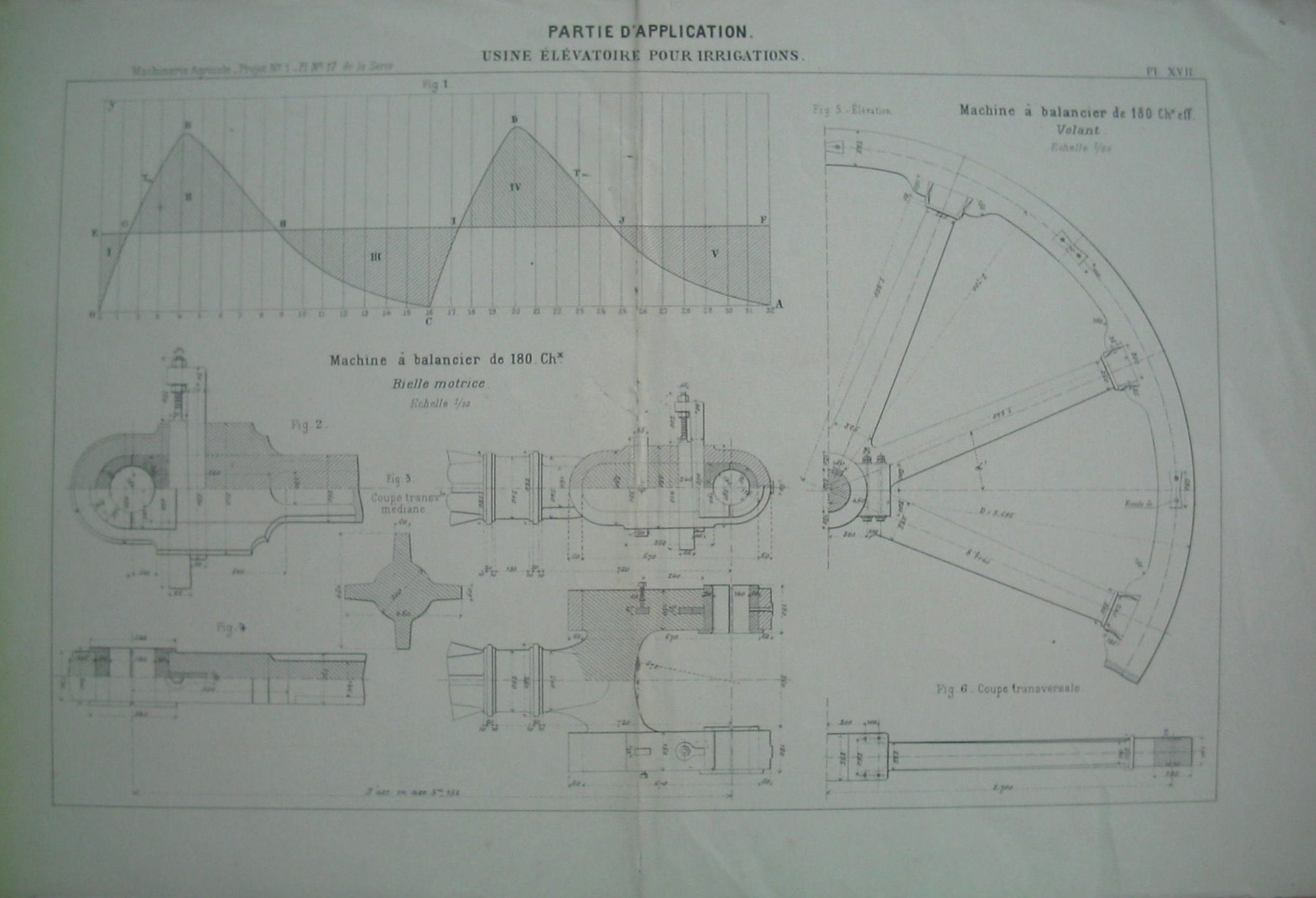 | Observações: | PL. XVII Partie D'Application Usine élévatoire pour irrigations; Machinerie Agricole-Projet Nº1 -Pl Nº 17 de la Sèrie No verso da estampa tem o carimbo (não está muito visivel)do Instituto Industrial do Porto. |