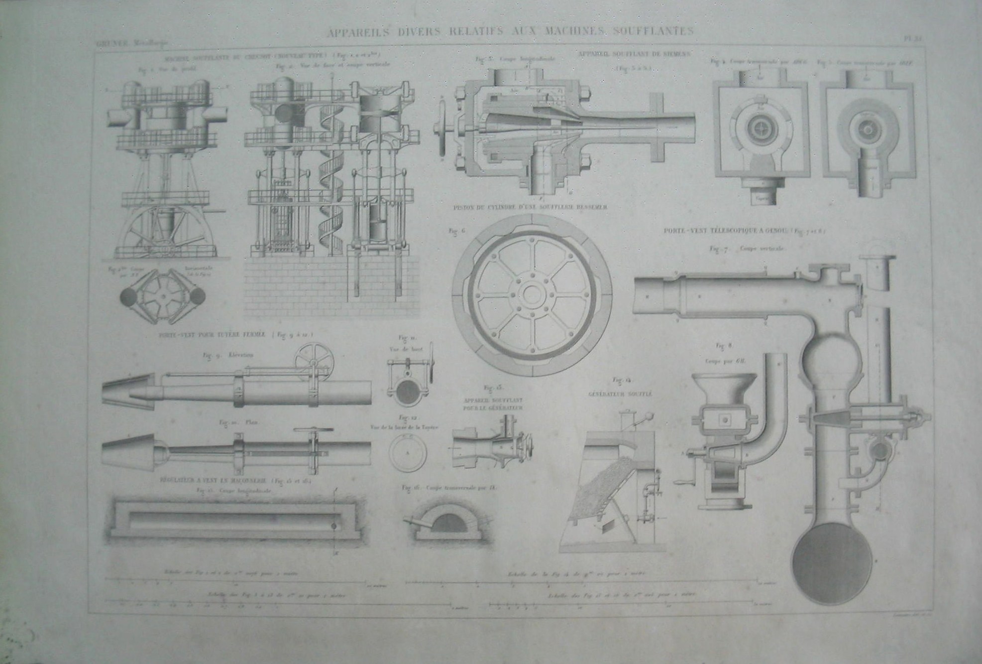 | Observações: | PL.XI GRUNER, Mètallurgie. Lemaitre del et sc. Catálogo on-line: Biblioteca Nacional de França;(www.bnf.fr) Traité de Mètallurgie, Parte 1, Tome 1; par L.M. Gruner (1875-1878). Este volume (primeiro) contém um atlas de 19 estampas que incluem os fornos e as máquinas que se utilizam nas fábricas. |