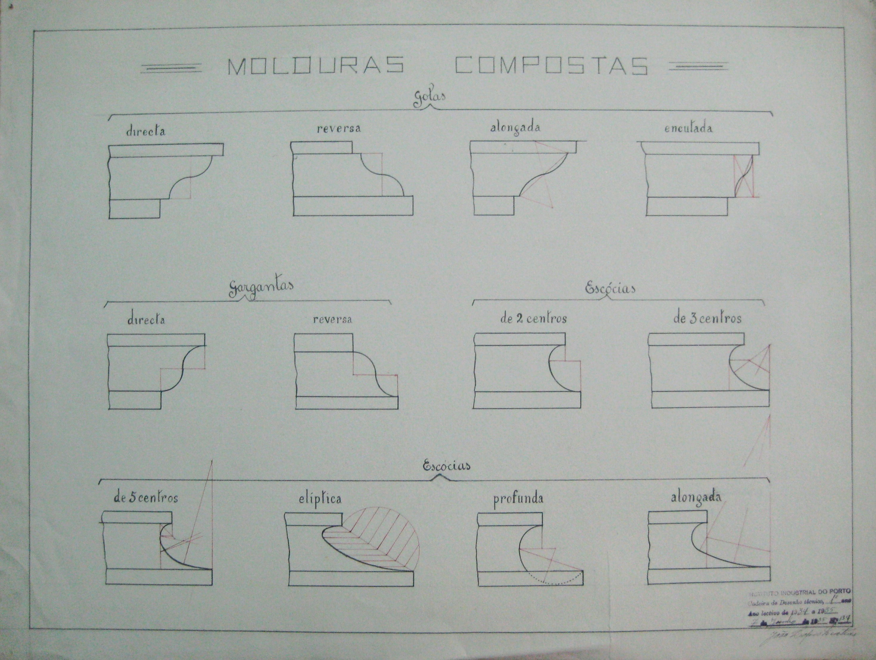 | Descrição: | O trabalho curricular apresenta várias imagens das molduras compostas. A primeira linha de figuras representa as golas: directa, reversa, alongada, encutada; Na segunda linha estão representadas as gargantas (directa e reversa) e as Escócias (de 2 centros e de 3 centros); Na terceira linha estão representadas as Escócias (de 5 centros; elíptica; profunda e alongada). |