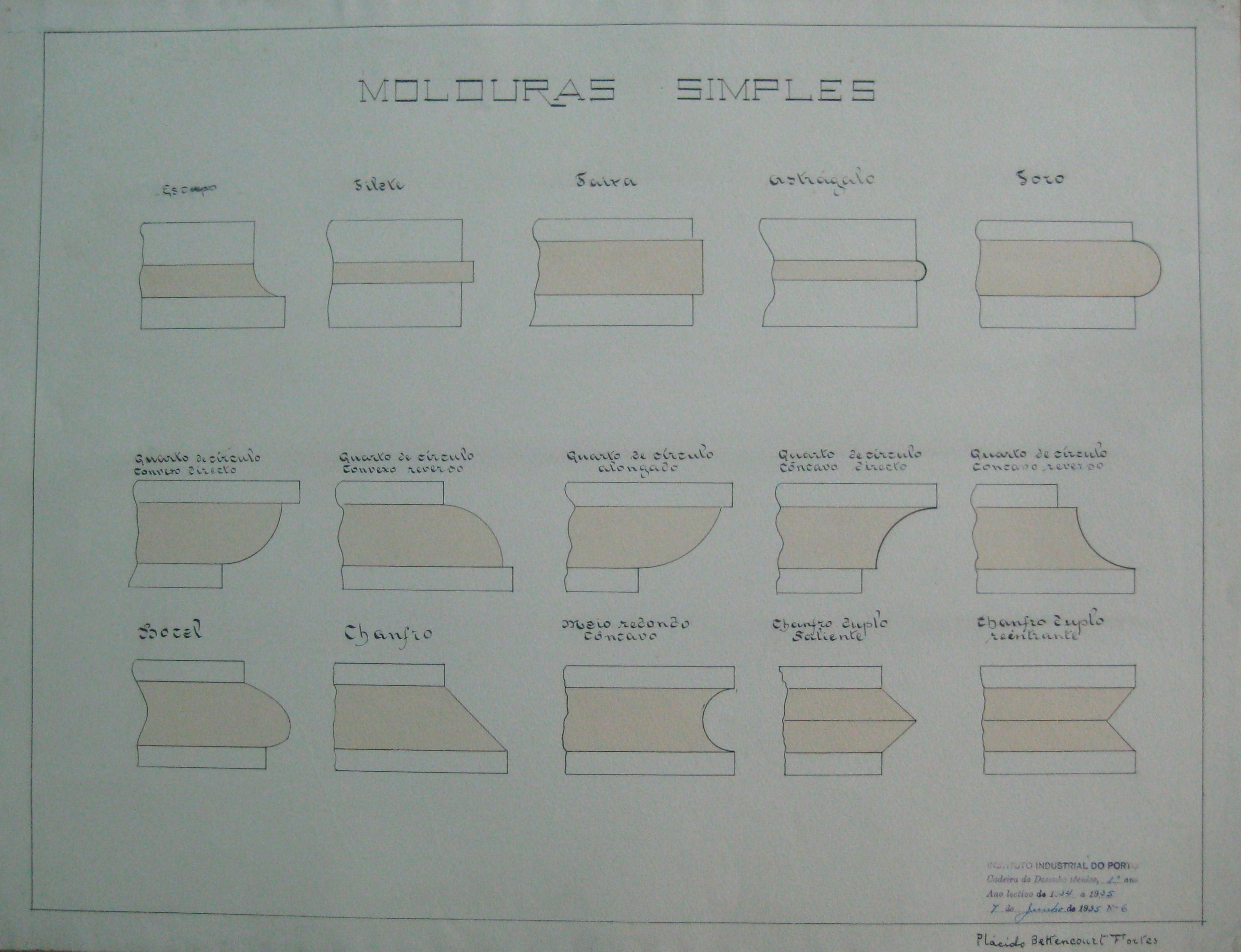 | Descrição: | O trabalho curricular apresenta quinze desenhos de molduras simples. Estão denominados como: Escapo; Filete; Faixa; Astrágalo; Toro; Quarto de círculo convexo directo; Quarto de círculo convexo reverso; Quarto de círculo alongado; Quarto de circulo côncavo directo; Quarto de círculo côncavo reverso;Bocel; Chanfro; Meio Redondo cônvavo; Chanfro duplo saliente; Chanfro duplo reintrante; |