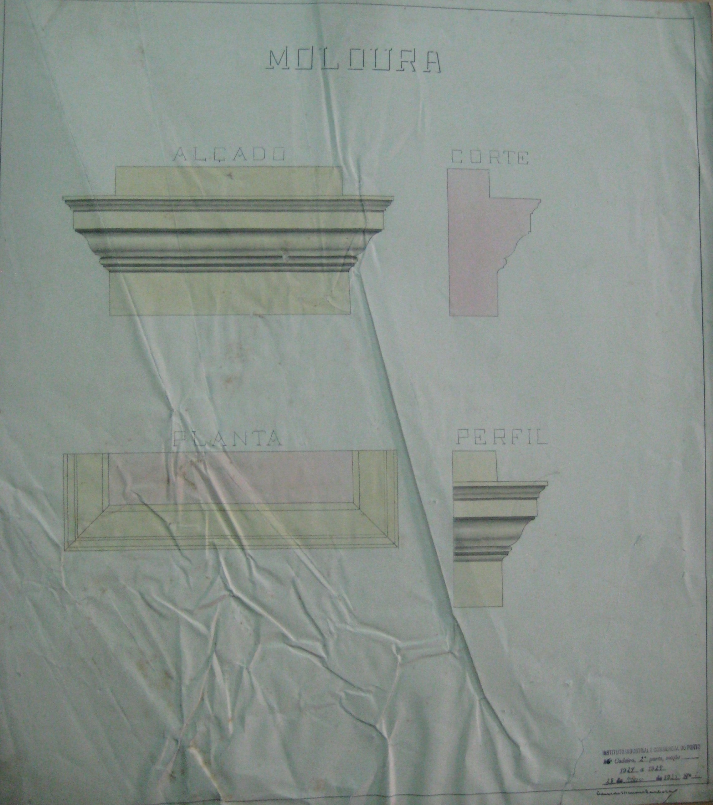 | Observações: | O trabalho curricular possui o carimbo do Instituto Industrial e Commercial do Porto (vigorou entre 1886 a 1918 e de 1924 a 1933). Contém a seguinte inscrição: "6ª cadeira, 2ª parte, secção__, 1924 a 1925; 28 de Março de 1925; Nº 7 Assinado por: Eduardo Mendes Barbosa. O aluno matriculou-se no dia 6 de Novembro de 1924, ano lectivo 1924/25, na classe de voluntário, do curso geral e Industrial (1º e 2º anos) e nas seguintes cadeiras: 1ª (1ª parte), 2ª (1ªparte), 3ª (2ªparte), 4ª (2ªparte), 6ª (2ªparte), 20ª (2ªparte), 21ª(1ª parte) e oficinas do 2º ano do curso geral. A 6ª Cadeira, 2ª parte refere-se a "Desenho Técnico". |