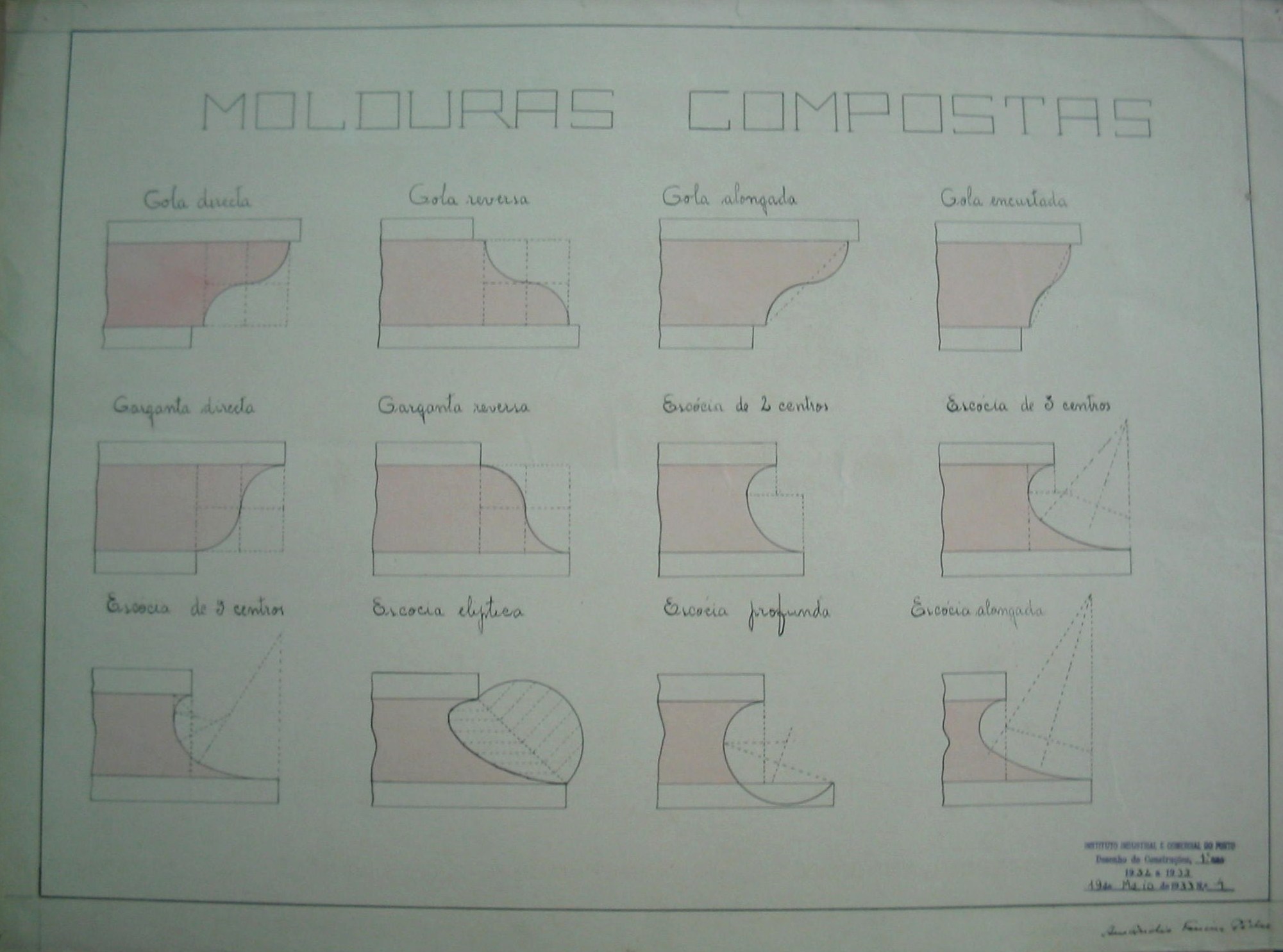 | Descrição: | O trabalho curricular apresenta doze desenhos de molduras compostas. Estas estão identificadas por: "Gola Directa; Gola Reversa; Gola Alongada; Gola Encurtada; Garganta Directa; Garganta Reversa; Escócia de 2 centros; Escócia de 3 centros; Escócia de 5 centros; Escócia Elíptica; Escócia Profunda; Escócia Alongada; |