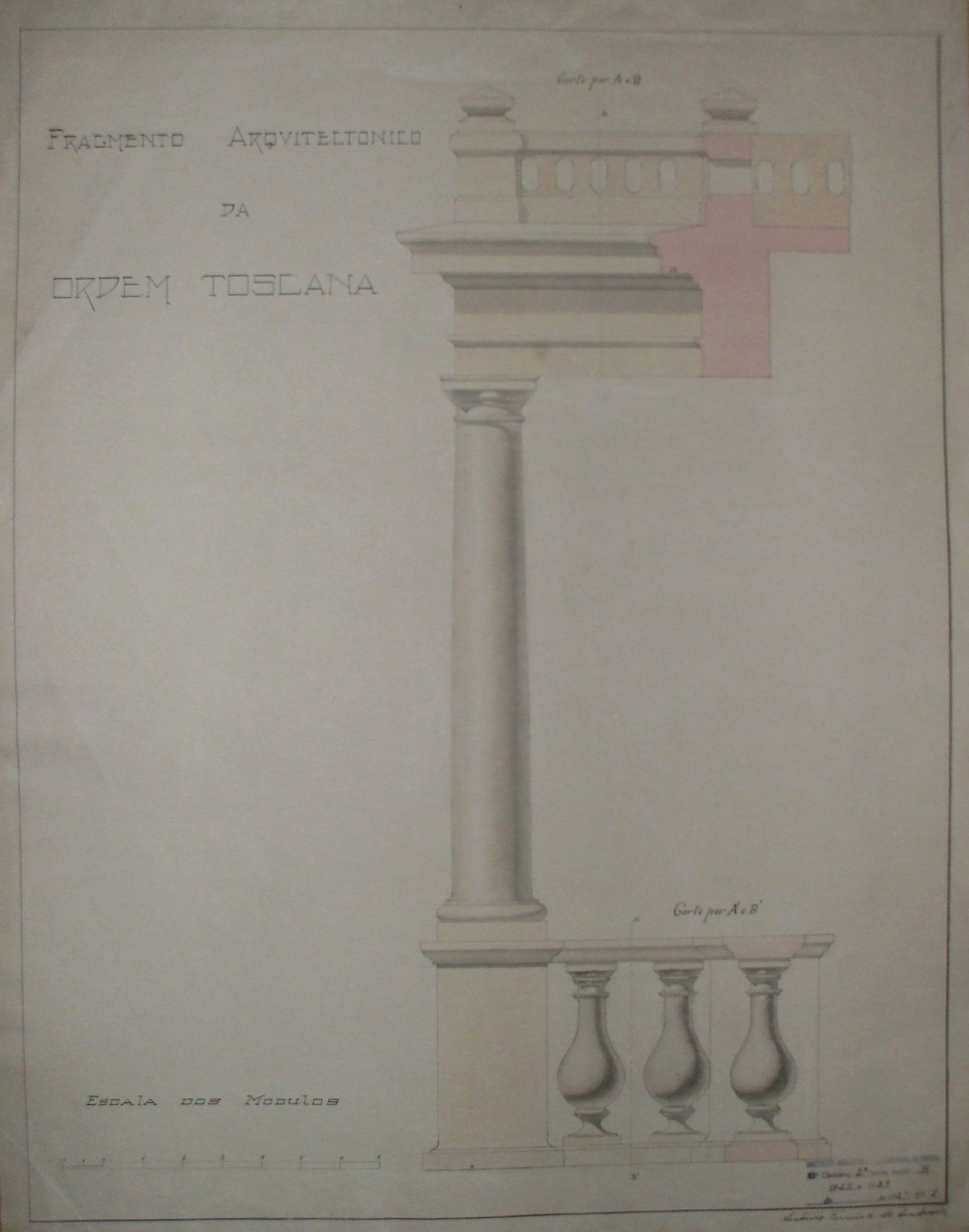 | Descrição: | O trabalho curricular apresenta um desenho de perfil com um fragmento arquitectónico, constituido por duas balaustradas (uma na parte superior e outra na inferior) e uma coluna. |