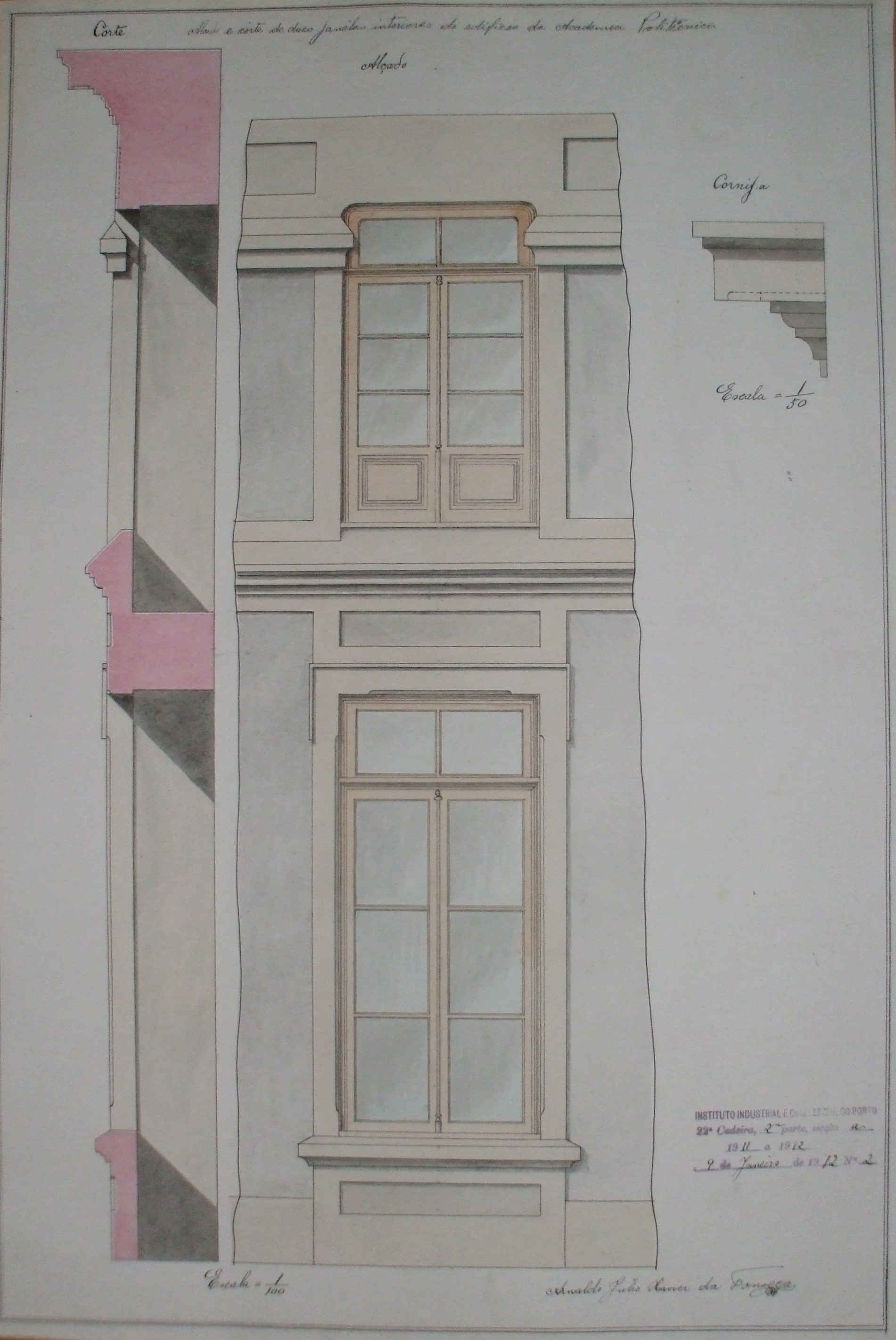 | Observações: | O trabalho curricular possui o carimbo do Instituto Industrial e Comercial do Porto, em vigor entre 1886 a 1918 e de 1924 a 1933. Contém a seguinte descrição:"Instituto Industrial e Commercial do Porto; 22ª cadeira; 2ª Parte; Secção A; 1911 a 1912; 9 de Janeiro de 1912, N.2:" A 22ª cadeira, 2ª Parte, Secção A corresponde a "Desenho Arquitectónico". Assinado por: Arnaldo Júlio Xavier da Fonseca O aluno matriculou-se no dia 14 de outubro de 1911, para seguir o curso superior industrial, na classe de voluntário, nas seguintes cadeiras: 1ª-6ª (2ª prt); 7ª (2ª prt); 21ª (2ª prt); 22ª (2ªprt A-B) e 24ª(1ªprt). |