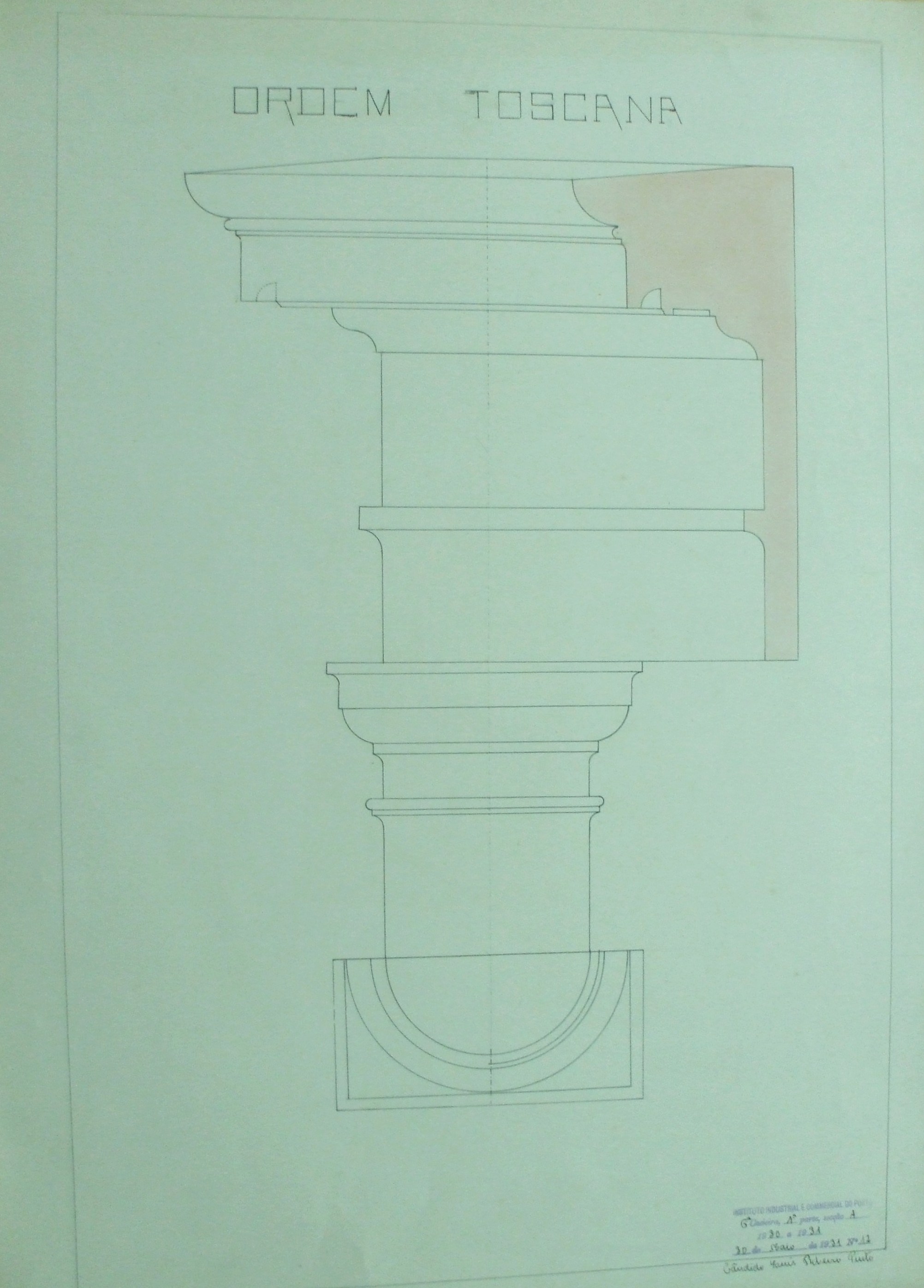 | Descrição: | O trabalho curricular contém um desenho que representa um fragmento arquitectónico da ordem toscana. Este fragmento é composto pelo capitel e o entablamento. A ordem toscana foi desenvolvida na época romana, é caracterizada pela simplificação das mesmas proporções da ordem dórica. A coluna não possui base, o fuste é liso sem caneluras e o capitel é simples com aneletes. |