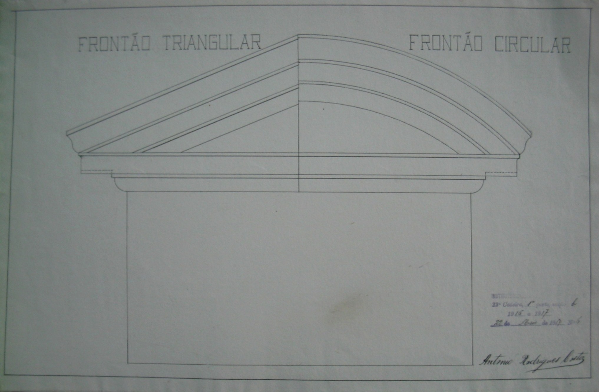 | Descrição: | O trabalho curricular contém um desenho que representa dois frontões, um triangular e outro circular. |