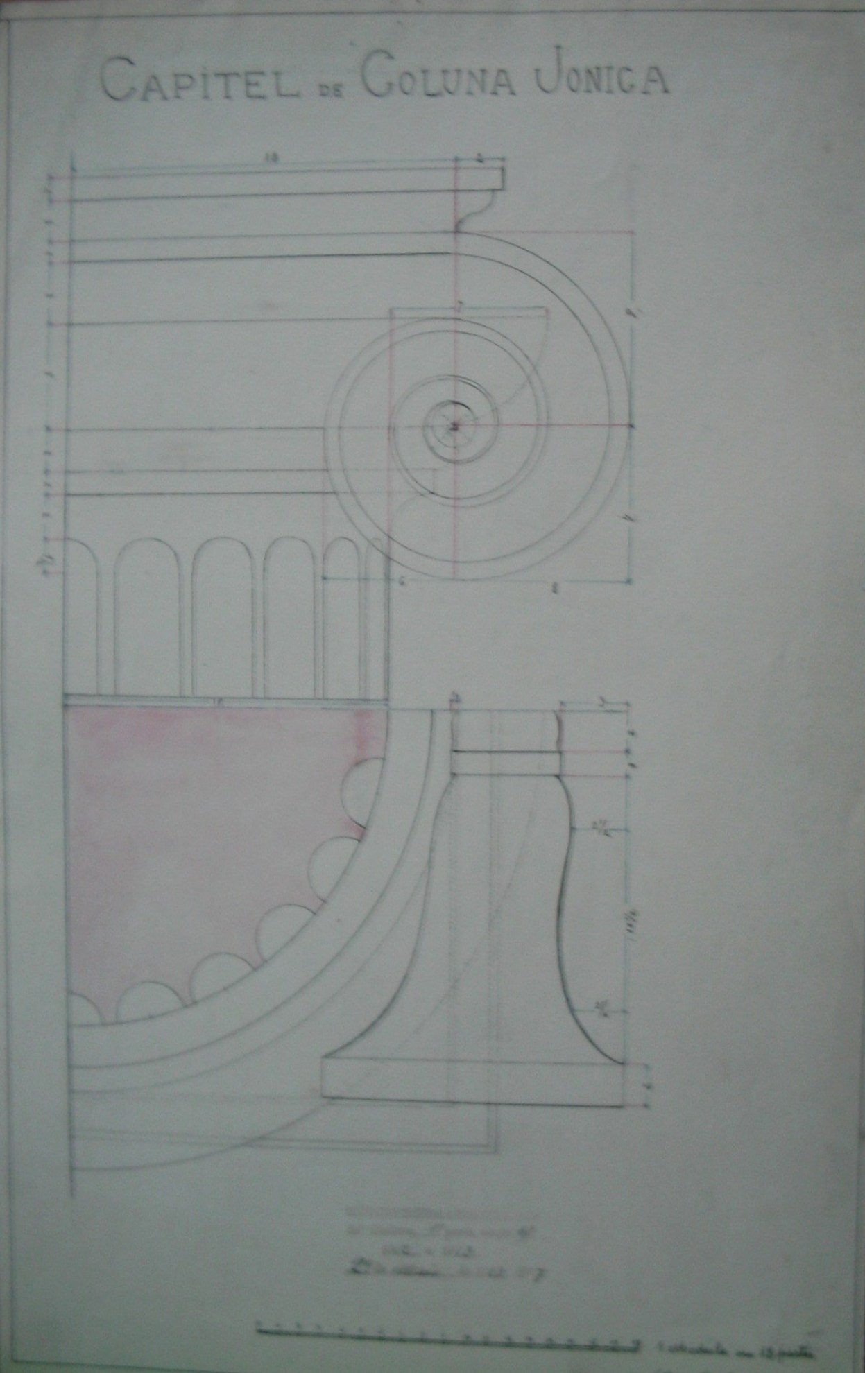 | Observações: | O trabalho curricular possui o carimbo do Instituto Industrial e Comercial do Porto, que vigorou de 1886 a 1918 e de 1924 a 1933. O carimbo contém a seguinte descrição: "Instituto Industrial e Commercial do Porto. 22ª cadeira, 1ª Parte, secção b). 1912 a 1913. 29 de Maio de 1913, Nº. 7." A 22ª cadeira, 1ª parte, secção b) corresponde a "Desenho Arquitectónico (1º ano)". O trabalho possui a escala do módulo, com a seguinte descrição: "1 Módulo ou 18 partes". O aluno matriculou-se no dia 3 de outubro de 1912, ano letivo 1912/13, na classe de voluntário e nas seguintes cadeiras: 1ª-5ª (2ªprt.), 6ª (2ª prt), 7ª (3ª prt), 16ª (2ª prt), 21ª (2ª prt), 22ª (1ª prt. a-b); 23ª (2ª prt.) para seguir o curso superior industrial. |