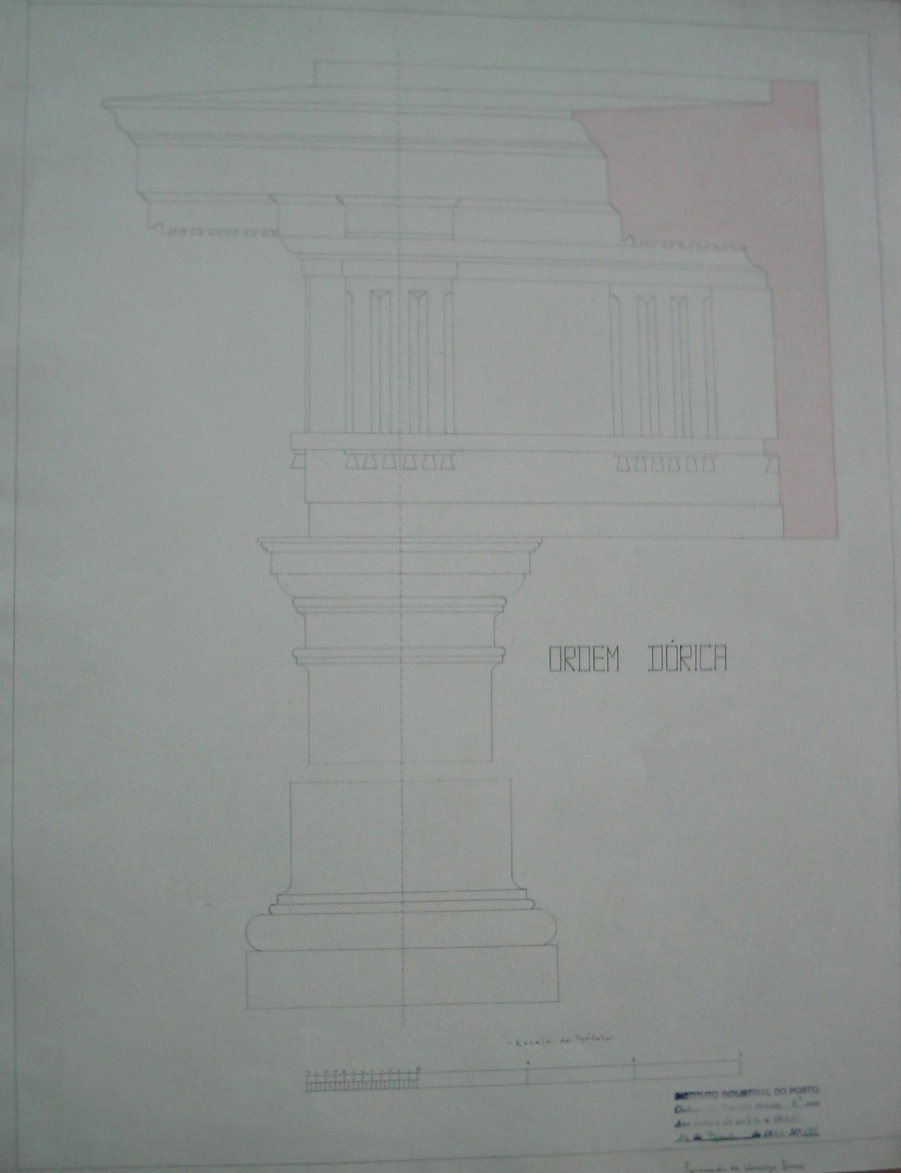 | Observações: | O trabalho curricular possui o carimbo do Instituto Industrial do Porto, que vigorou de 1864 a 1886, de 1918 a 1924 e de 1933 a 1974. O carimbo contém a seguinte descrição:"Instituto Industrial do Porto, Cadeira de Desenho Técnico, 2º ano. Ano Lectivo de 1934 a 1935. 14 de Maio de 1935, Nº. 135". O trabalho contém a escala do módulo e está assinado pelo aluno. |