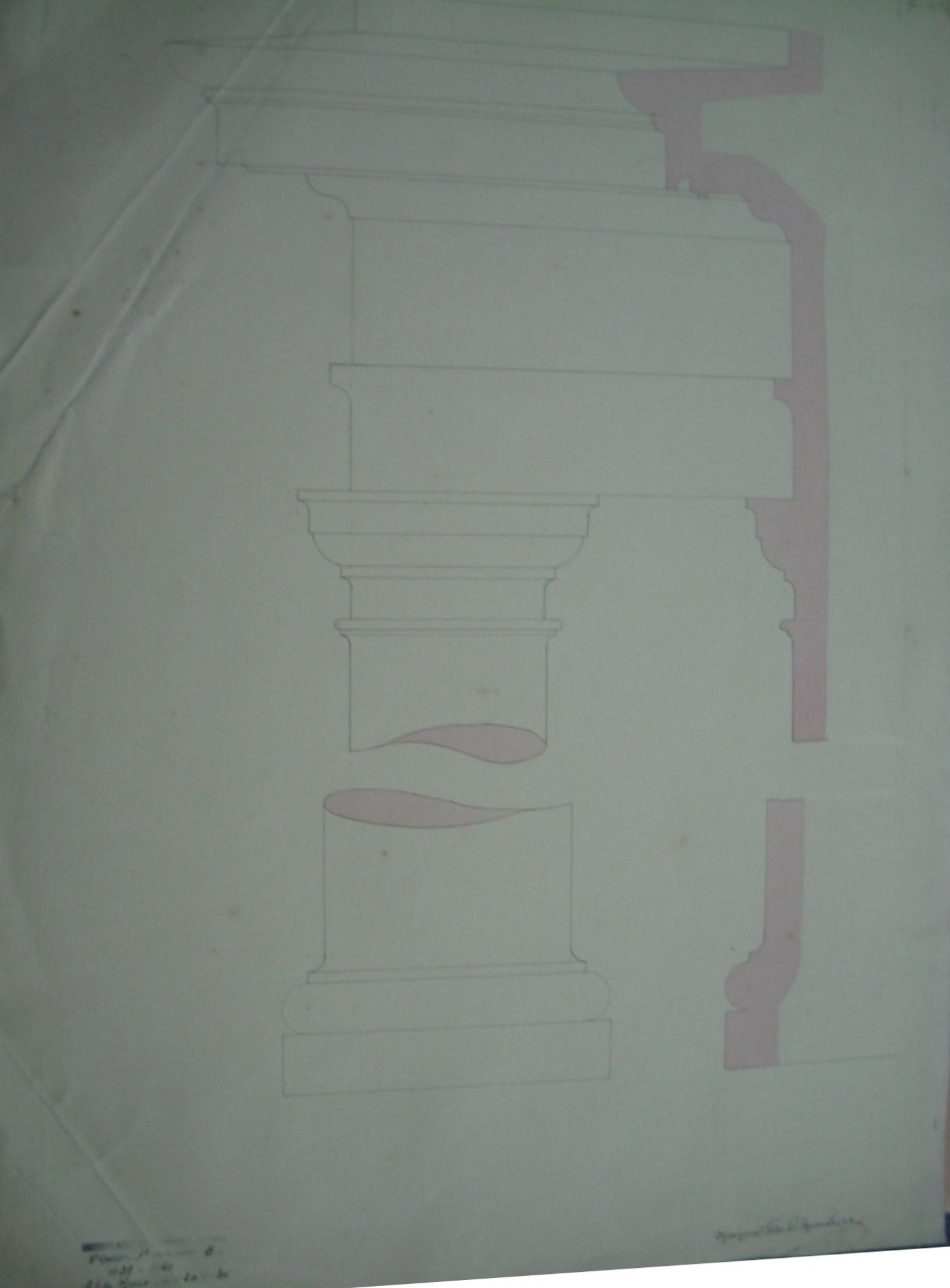 | Descrição: | O desenho representa um fragmento arquitetónico composto por coluna, capitel e entablamento. Possivelmente pretencem à ordem arquitetónica dorica, por apresentar a simplicidade das formas. |