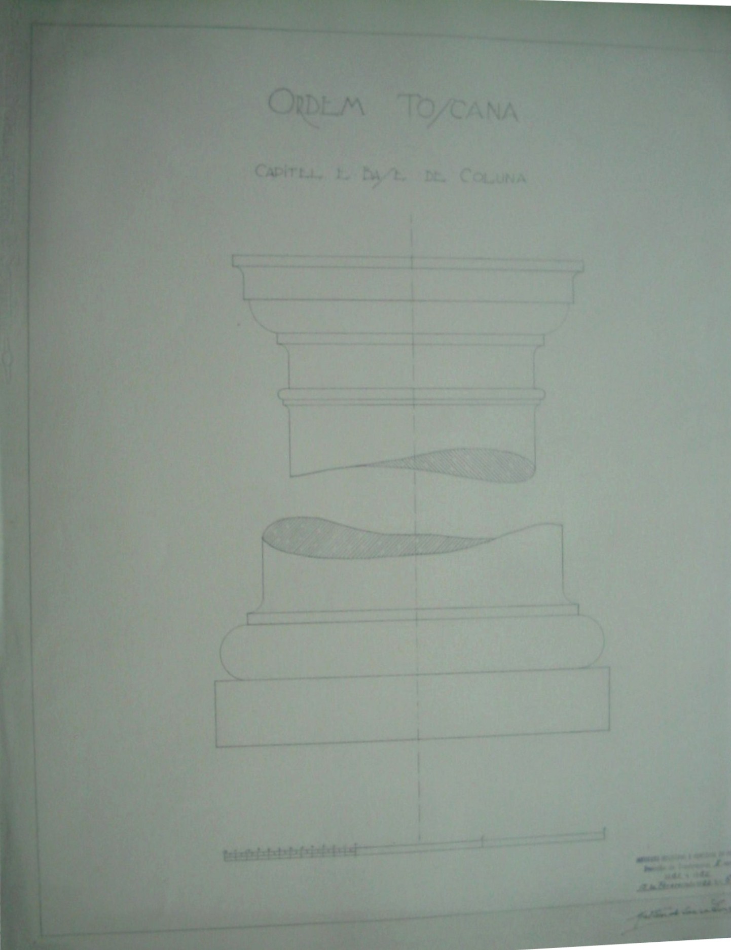 | Descrição: | O desenho representa um capitel e a base da coluna da ordem toscana. Esta ordem é caracterizada pela simplicidade das formas. |