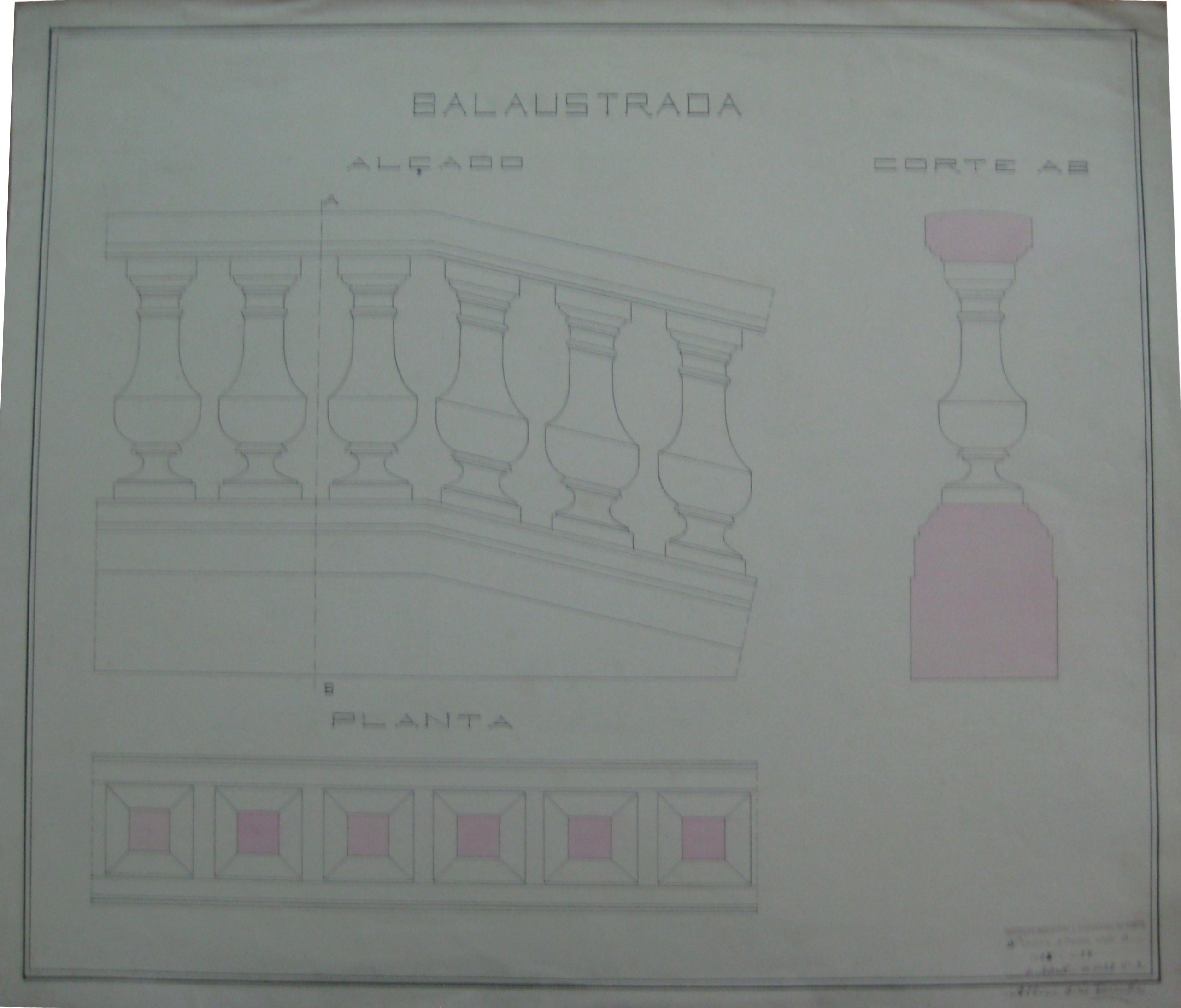 | Descrição: | O trabalho curricular contém três figuras que representam o alçado, o corte da secção AB e a planta duma balaustrada. |