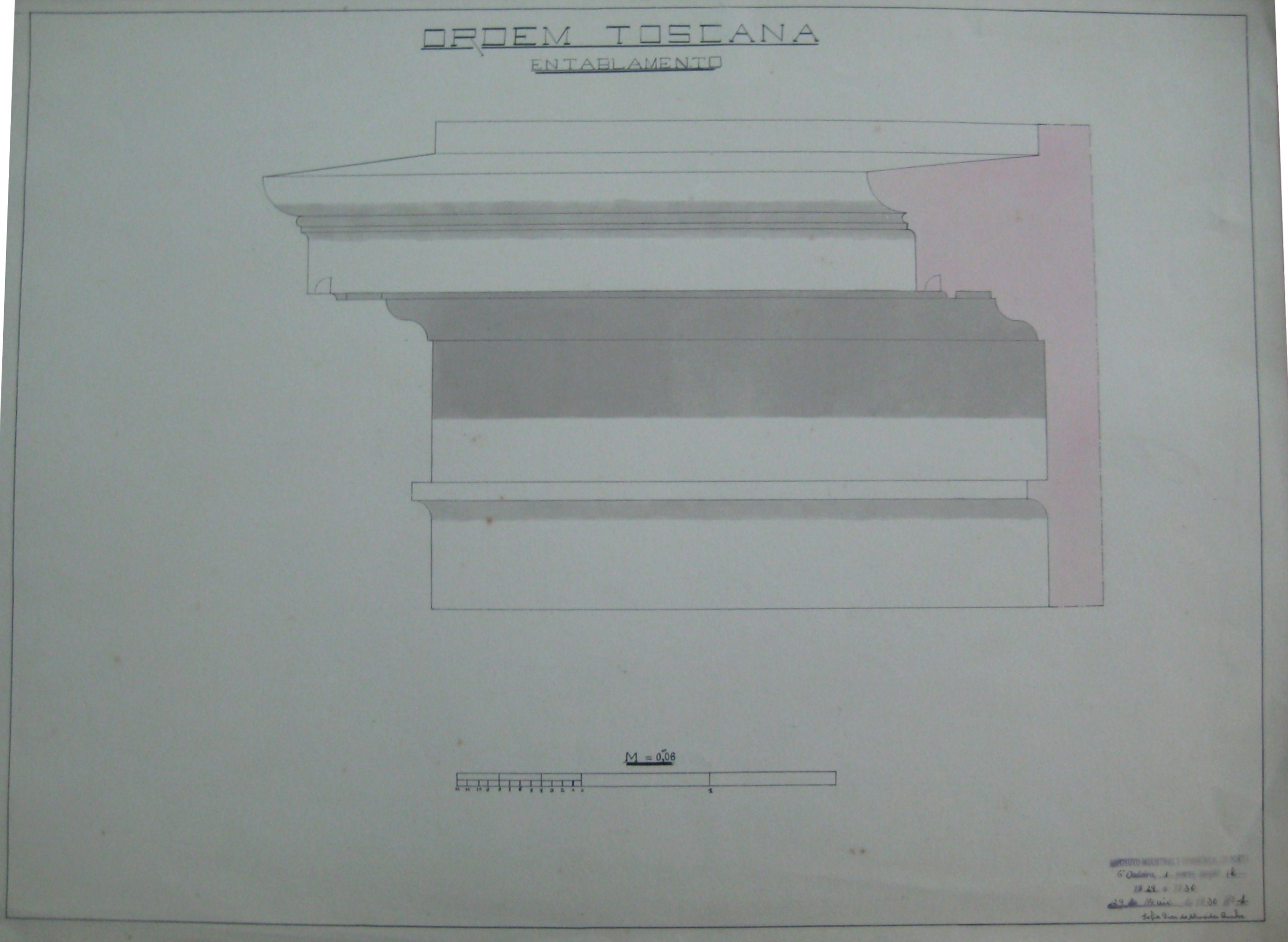 | Observações: | O trabalho possui o carimbo do Instituto Industrial e Comercial do Porto, que vigorou de 1886 a 1918 e de 1924 a 1933. O carimbo contém a seguinte descrição:"Instituto Industrial e Commercial do Porto. 6ª cadeira, 1ª parte, secção b). 1929 a 1930. 29 de Maio de 1930, Nº. 1". A 6ª cadeira corresponde a "Desenho Técnico". O trabalho possui a escala do desenho. Cada módulo corresponde M=0,06m. A aluna matriculou-se no dia 14 de outubro de 1929, ano letivo 1929/30, na classe de ordinário, no curso geral industrial (1º ano) e nas seguintes cadeiras: 1ª (1ª prt); 2ª (1ªprt.); 3ª (1ª prt); 4ª (1ª prt); 6ª (1ªprt.); 20ª (1ªprt); Serralharia (1º ano); Carpintaria (1º ano). |