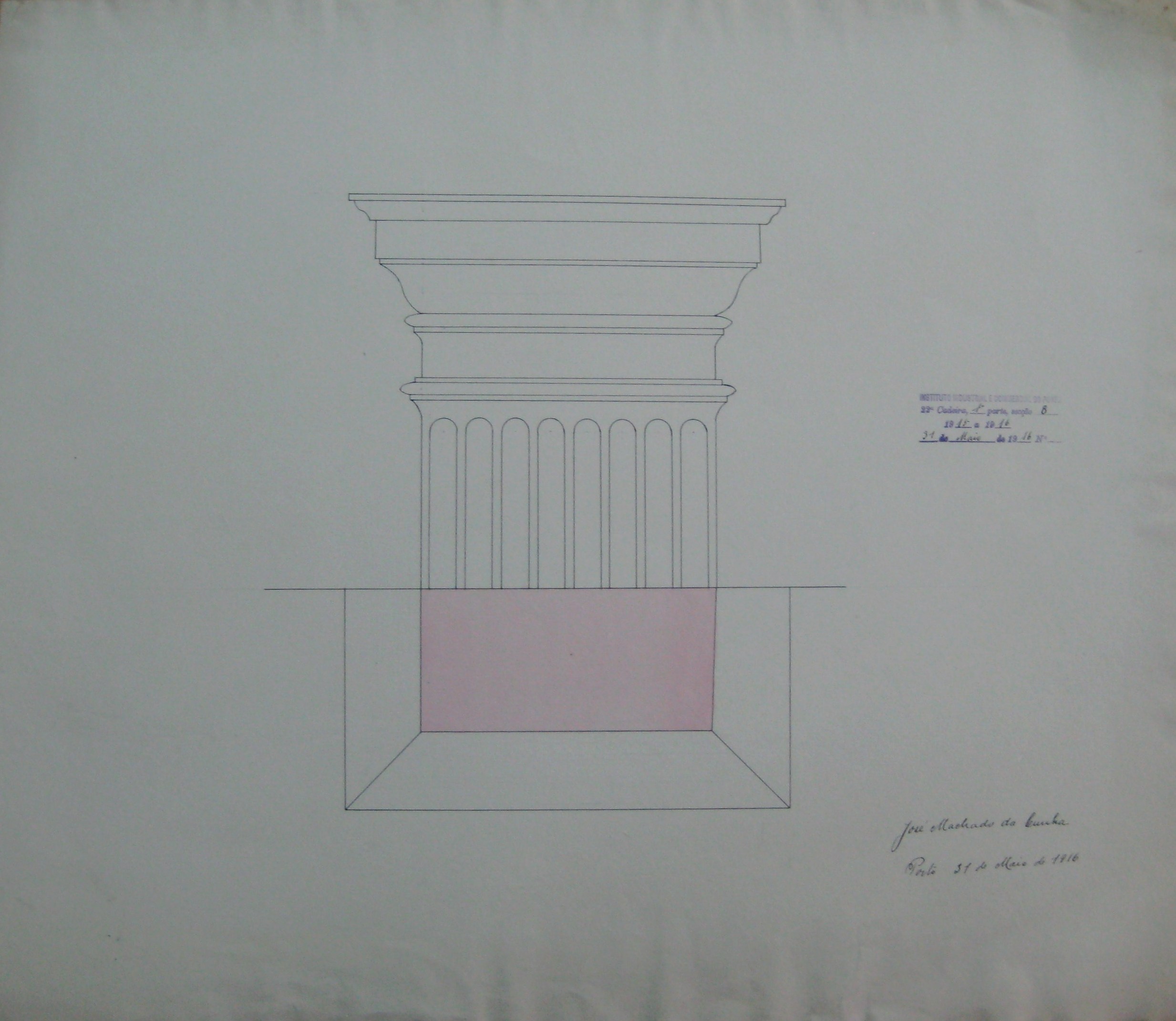 | Observações: | O trabalho curricular possui o carimbo do Instituto Industrial e Comercial do Porto, que vigorou de 1886 a 1918 e de 1924 a 1933. O carimbo contém a seguinte descrição:"Instituto Industrial e Commercial do Porto. 22ª cadeira, 1ª parte, secção B. 1915 a1916. 31 de Maio de 1916, Nº. ____ ". A 22ª cadeira, 1ª parte, secção B corresponde a "Desenho Arquitectónico (1º ano)". O aluno matriculou-se em 12 de outubro de 1915, ano letivo de 1915/16, na classe de voluntário, nas cadeiras: 2ª; 3ª; 4ª (1ª prt); 21ª (2ª prt); e 22ª (1ª prt. a-b) para o curso de máquinas. |
