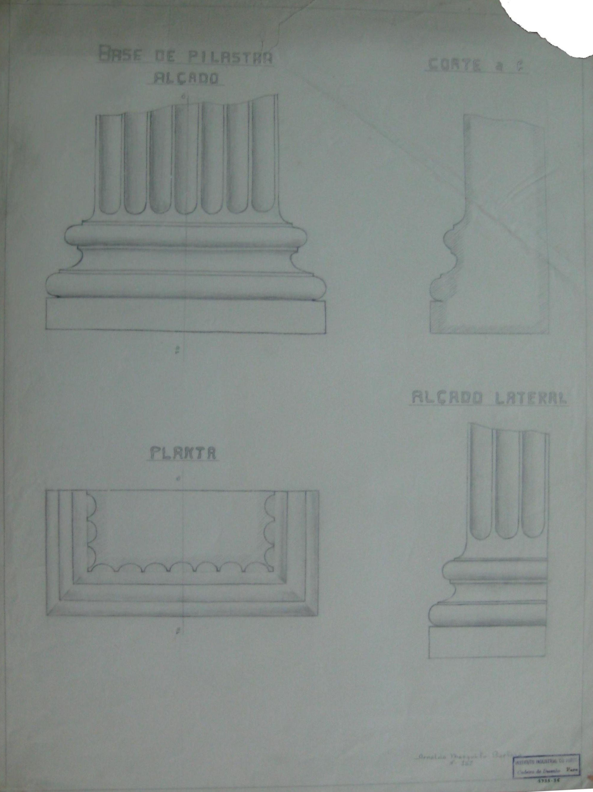 | Descrição: | O trabalho contém quatro desenhos que representam o alçado, o corte Ab, a planta e o alçado lateral duma base de pilastra. |