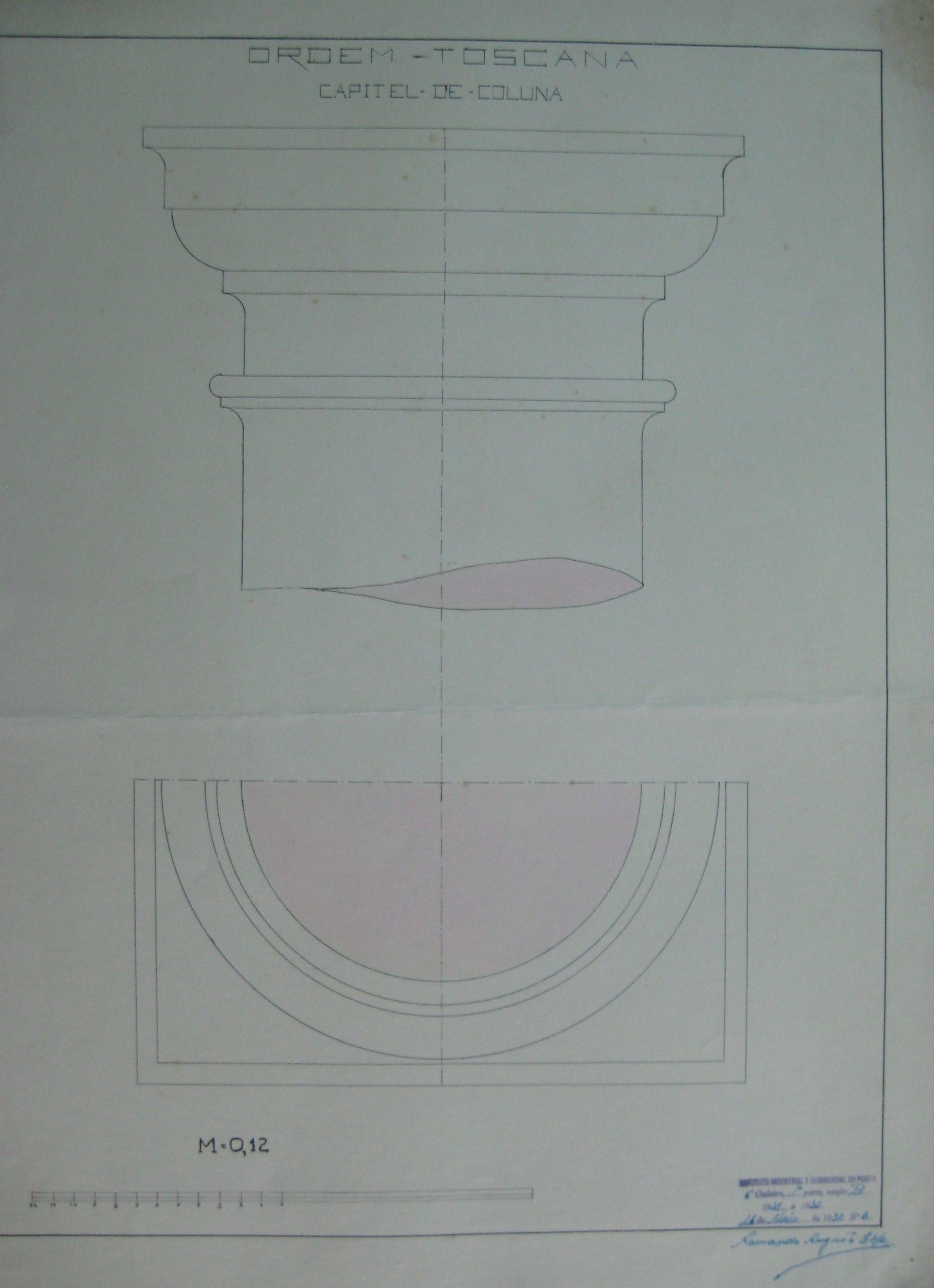 | Observações: | O trabalho curricular possui o carimbo do Instituto Industrial e Comercial do Porto, que vigorou de 1886 a 1918 e de 1924 a 1933. O carimbo contém a seguinte inscrição: "Instituto Industrial e Commercial do Porto. 6ª cadeira, 1ª parte, secção B. 1929 a 1930. 16 de Maio de 1930, Nº. 6". A 6ª cadeira, 1ª parte corresponde a "Desenho Técnico". No trabalho foi desenhado a escala. Cada módulo corresponde a 0,12. O aluno matriculou-se no dia 14 de outubro de 1929, ano letivo 1929/30, na classe de ordinário, no curso geral industrial (1º ano) e nas cadeiras: 1ª (1ªprt.); 2ª (1ªprt.); 3ª (1ªprt.); 4ª (1ª prt.); 6ª (1ªprt); 20ª (1ªprt.); Serralharia (1º ano); Carpintaria (1º ano) |