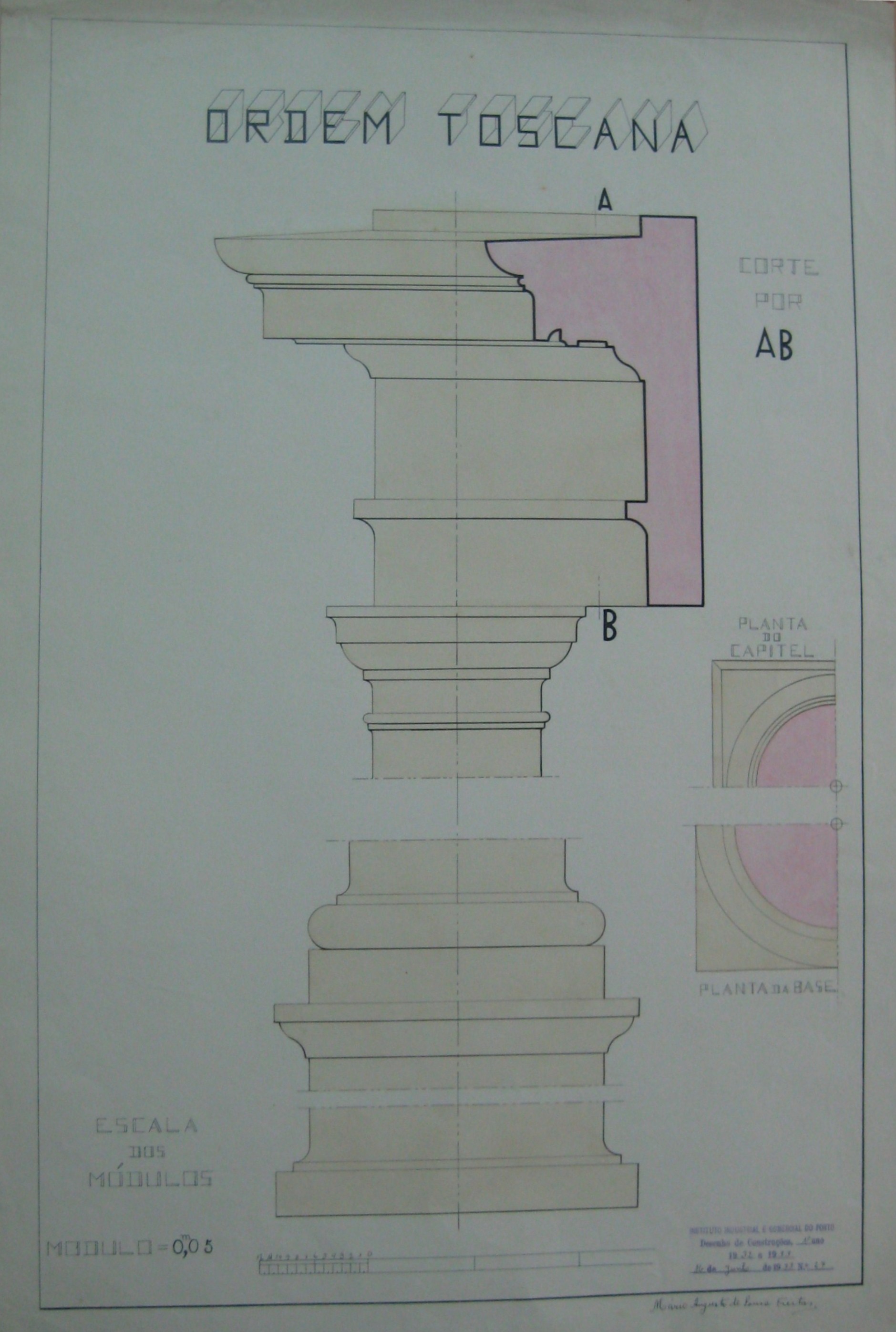| Observações: | O trabalho curricular possui o carimbo do Instituto Industrial e Comercial do Porto, que vigorou de 1886 a 1918 e de 1924 a 1933. O carimbo contém a seguinte descrição: "Instituto Industrial e Comercial do Porto. Desenho de Construções, 1º ano. 1932 a 1933. 16 de Junho de 1933, Nº. 27". No trabalho foi desenhado a escala dos módulos. Cada módulo corresponde a 0,05 m. O aluno matriculou-se no dia 30 de Setembro de 1932, ano letivo 1932/33, na classe de ordinário, no curso de Construções, Obras Públicas e Minas, 1º ano e nas seguintes cadeiras: 1ª matemática; 2ª Física; 4ª Quimica; 6ª Mineralogia; Laboratório de Física; Laboratório de Mineralogia; Laboratório de Química; Desenho de Construções 1º ano; Carpintaria 1º ano. |