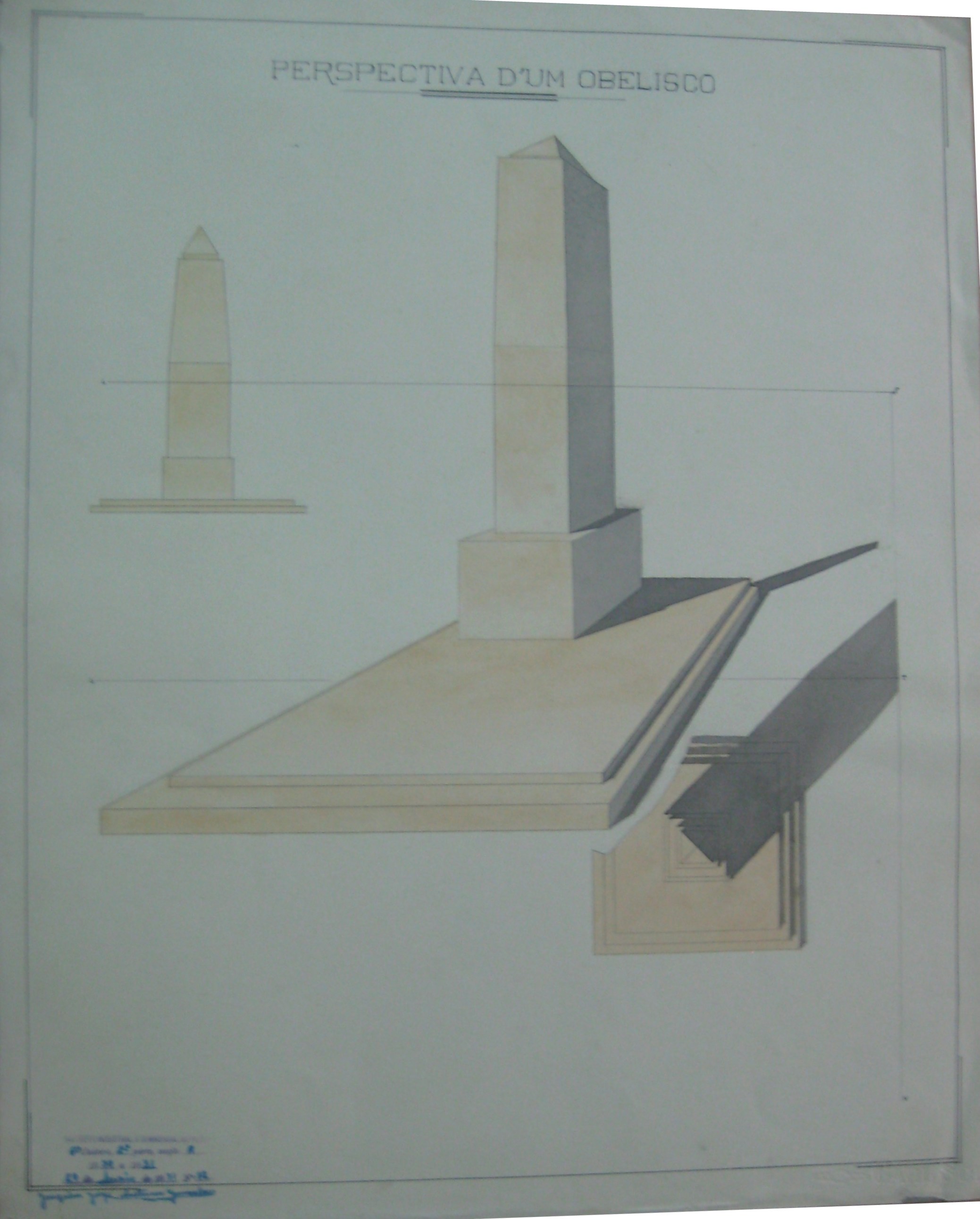 | Descrição: | O trabalho curricular contém três desenhos que representam várias perspectivas dum obelisco, respectivamente perspectiva de frente, lateral e de cima. |