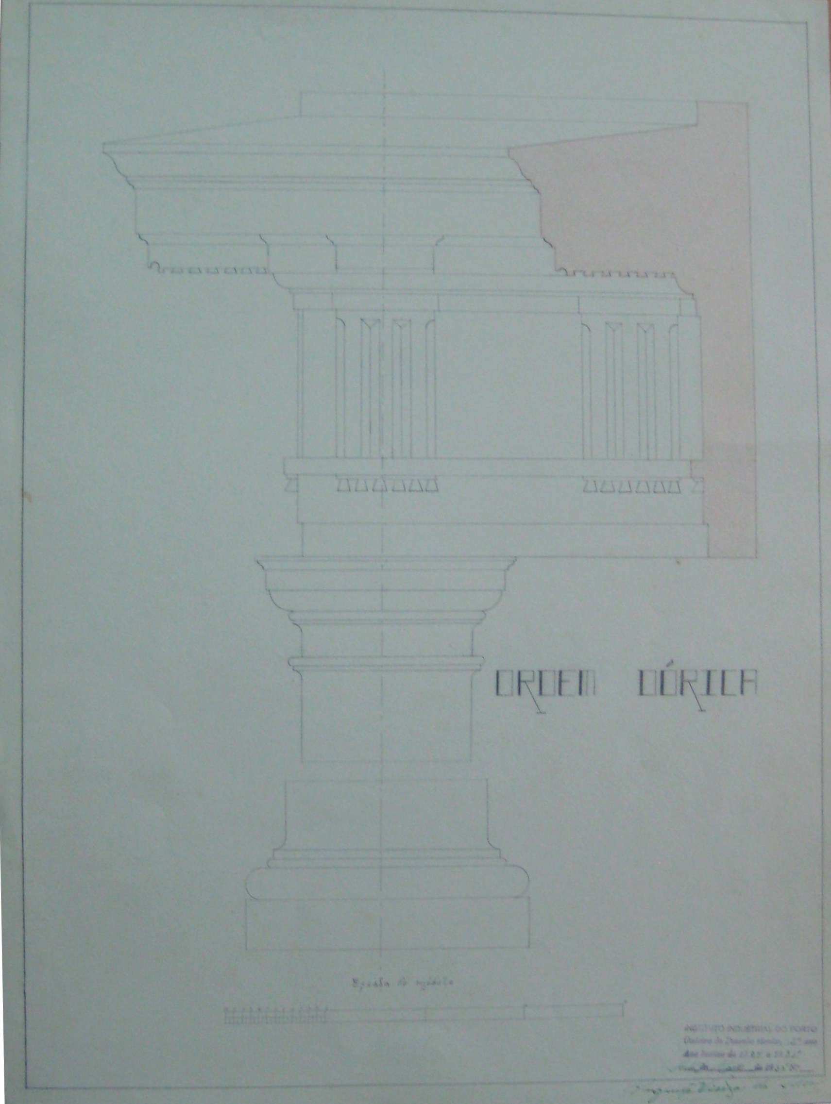 | Observações: | O trabalho possui o carimbo do Instituto industrial do Porto, que vigorou de 1864 a 1886, de 1918 a 1924 e de 1933 a 1974. O carimbo contém a seguinte descrição:"Instituto Industrial do Porto. cadeira de Desenho Técnico, 2º ano. Ano lectivo de 1934 a 1935. Porto, 21 de Maio de 1935, Nº. ____ ". No trabalho foi desenhado a escala do módulo. |
