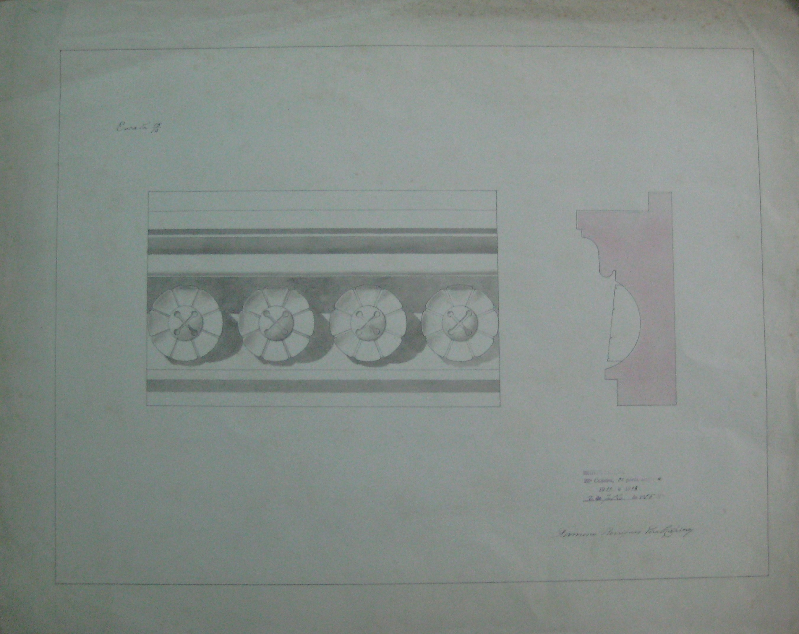 | Observações: | O trabalho possui o carimbo do Instituto Industrial e Comercial do Porto, que vigorou de 1886 a 1918 e de 1924 a 1933. O carimbo contém a seguinte inscrição:"Instituto Industrial e Comercial do Porto. 22ª cadeira, 2ª parte, secção a. 1915 a 1916. 12 de Julho de 1916, Nº.____ ". A 22ª cadeira, 2ª parte, secção a corresponde a "Desenho Arquitectónico (2º ano)". O aluno matriculou-se no dia 14 de outubro de 1915, ano letivo 1915/16, na classe de voluntário, nas cadeiras: 8ª (2ªprt); 9ª (1ª prt); 10ª (1ªprt); 11ª (1ª prt); 13ª (2ª prt); 14ª (1ªprt); 16ª (2ªprt). 21ª (3ª prt); 22ª (2ªprt. a-b) e 24ª (2ª prt) para o curso superior industrial . Em 5 de novembro matriculou-se na 13ª (3ª prt). |