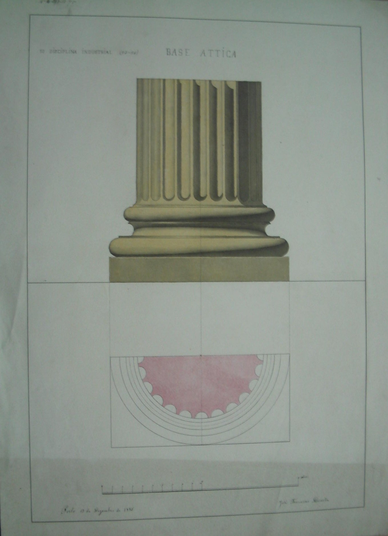 | Observações: | O trabalho contém as seguintes inscrições: "Nº. 4-13-12-95" "10 Disciplina Industrial (95-96)". "Base Attica" "Porto, 13 de Dezembro de 1895" "José Francisco Duarte" No trabalho foi desenhada a escala dos módulos. A 10ª disciplina industrial corresponde a "Desenho Arquitectónico, topográfico e de minas" segundo no artº. 6º do Decreto de 8 de Dezembro de 1891. O aluno matriculou-se no dia 7 de outubro de 1895, ano letivo 1895/96, na classe de voluntário, nas disciplinas 1ª a); 16ª da secção industrial, para seguir o curso geral de desenho. |