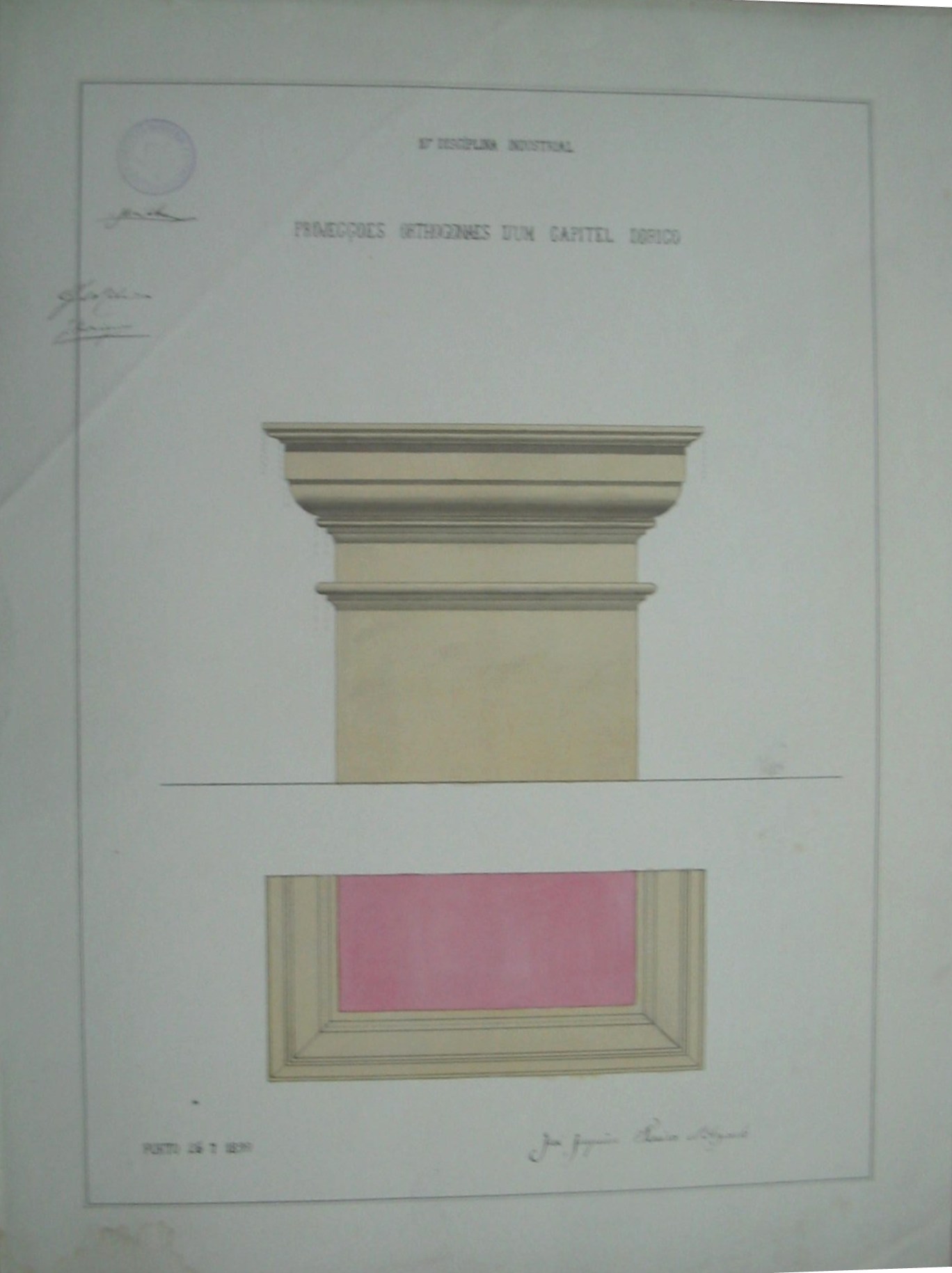 | Observações: | O trabalho possui o carimbo do Instituto Industrial e Comercial do Porto, que vigorou de 1886 a 1918 e de 1924 a 1933. O carimbo contém a seguinte informação:"Instituto Industrial e Commercial do Porto. 10ª Cadeira" O trabalho contém o seguinte título: "10ª Disciplina Industrial" "Projecções Orthogonaes dum Capitel Dorico" O trabalho datado e está assinado pelo professor: José Miguel Abreu; e pelo aluno. A 10ª disciplina corresponde a "Desenho Arquitectónico, topográfico e de minas", de acordo com Art. 6º do Decreto de 8 de Dezembro de 1891. O aluno matriculou-se no dia 15 de outubro de 1898, ano letivo 1898/99, na classe de livre, nas disciplinas 10ª e 18ª a) em cursos com alunos livres para seguir o curso de escultura decorativa. |