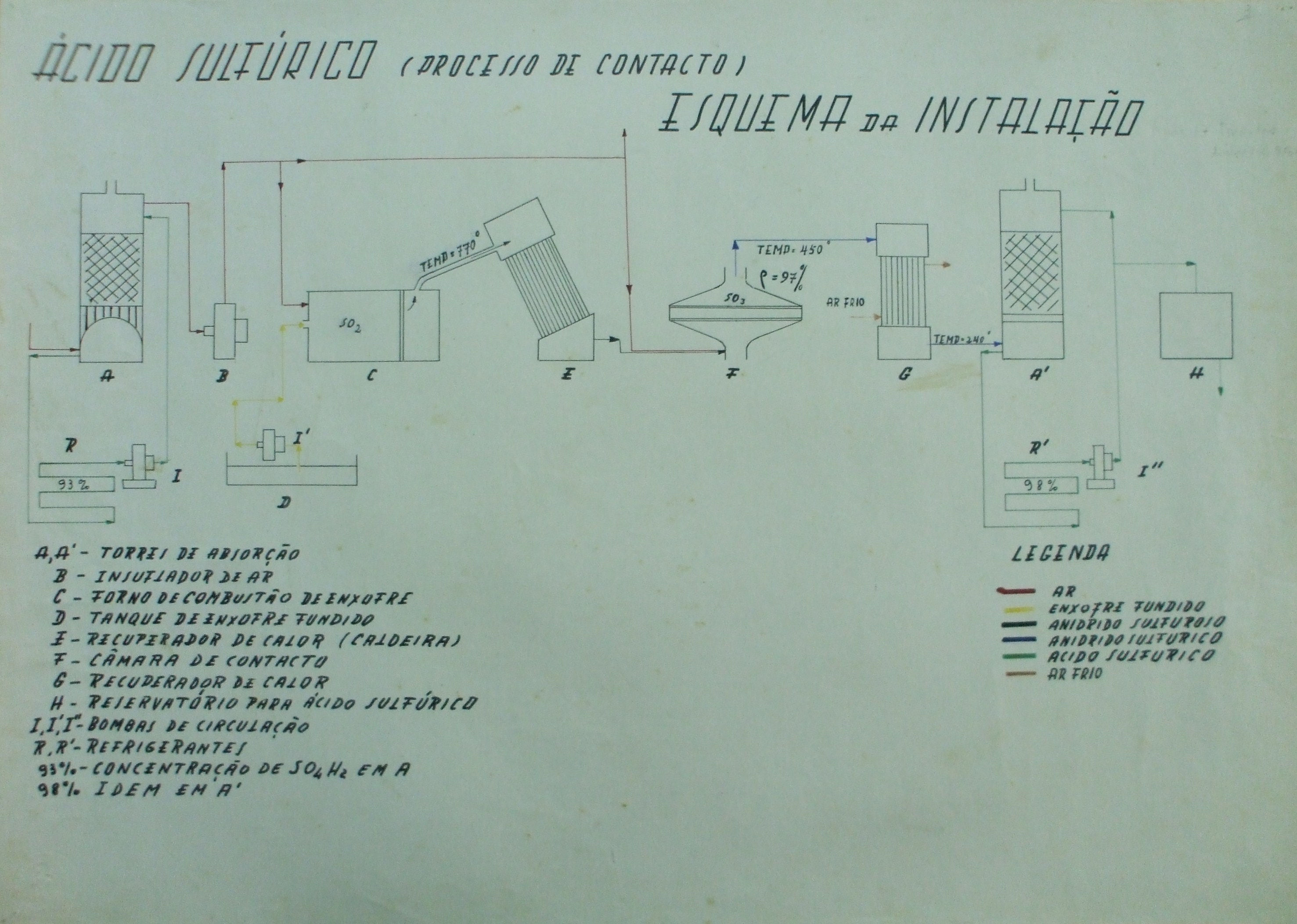 | Descrição: | O trabalho curricular representa o esquema de instalação do processo de contacto do ácido sulfúrico. Sob o esquema contém a legenda. |