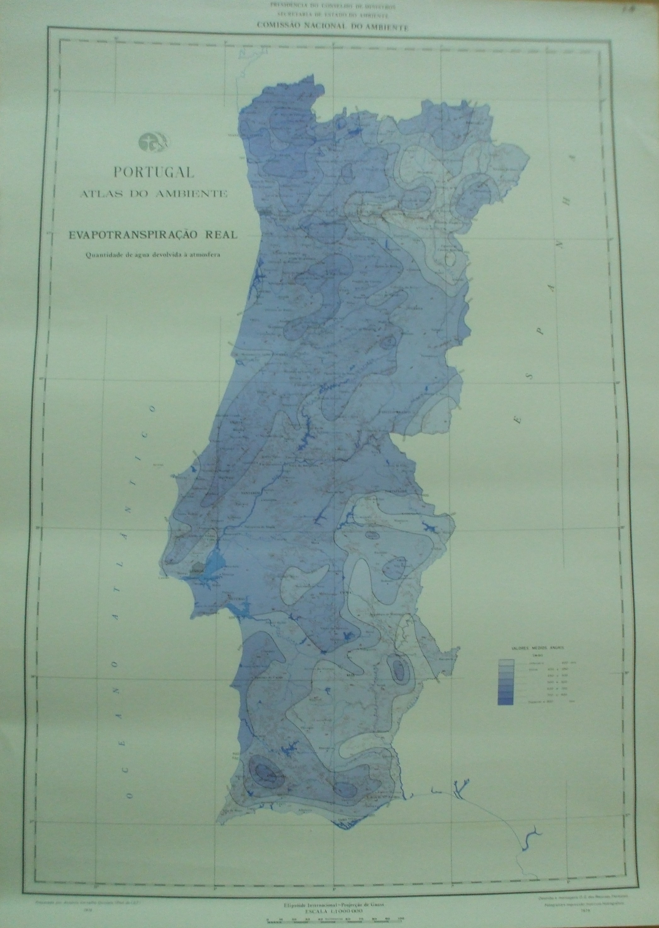 | Observações: | Contém as seguintes informações: No cabeçalho: Ao centro: "Presidência do Conselho de Ministros Secretaria de Estado do Ambiente Comissão Nacional do Ambiente" Lado Direito: "I.9" Em rodapé: Lado Esquerdo: "Preparada por António Carvalho Quintela (Prof. do I.S.T.) 1974" Ao centro: "Elipsóide Internacional - Projecção de Gauss Escala 1:1000 000" Do lado Direito: "Desenho e montagens: D.G.dos Recursos Florestais Fotografia e impressão: Instituto Hidrográfico 1975" |