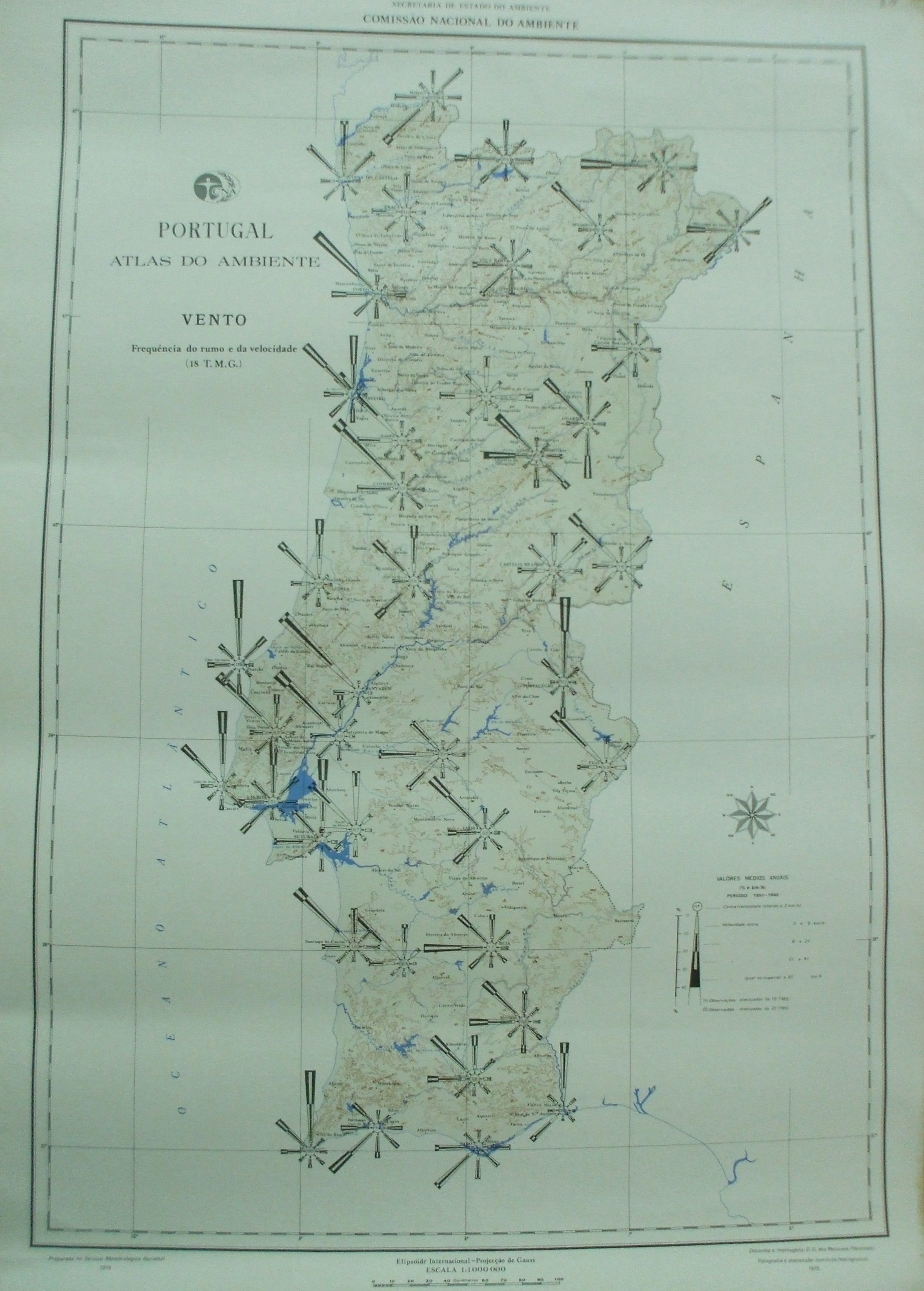 | Observações: | Contém as seguintes informações: No cabeçalho: Ao centro: "Presidência do Conselho de Ministros Secretaria de Estado do Ambiente Comissão Nacional do Ambiente" Lado Direito: "I.7" Em rodapé: Lado Esquerdo: "Preparada no Serviço Meteorológico Nacional 1974" Ao centro: "Elipsóide Internacional - Projecção de Gauss Escala 1:1000 000" Do lado Direito: "Desenho e montagens: D.G.dos Recursos Florestais Fotografia e impressão: Instituto Hidrográfico 1975" |