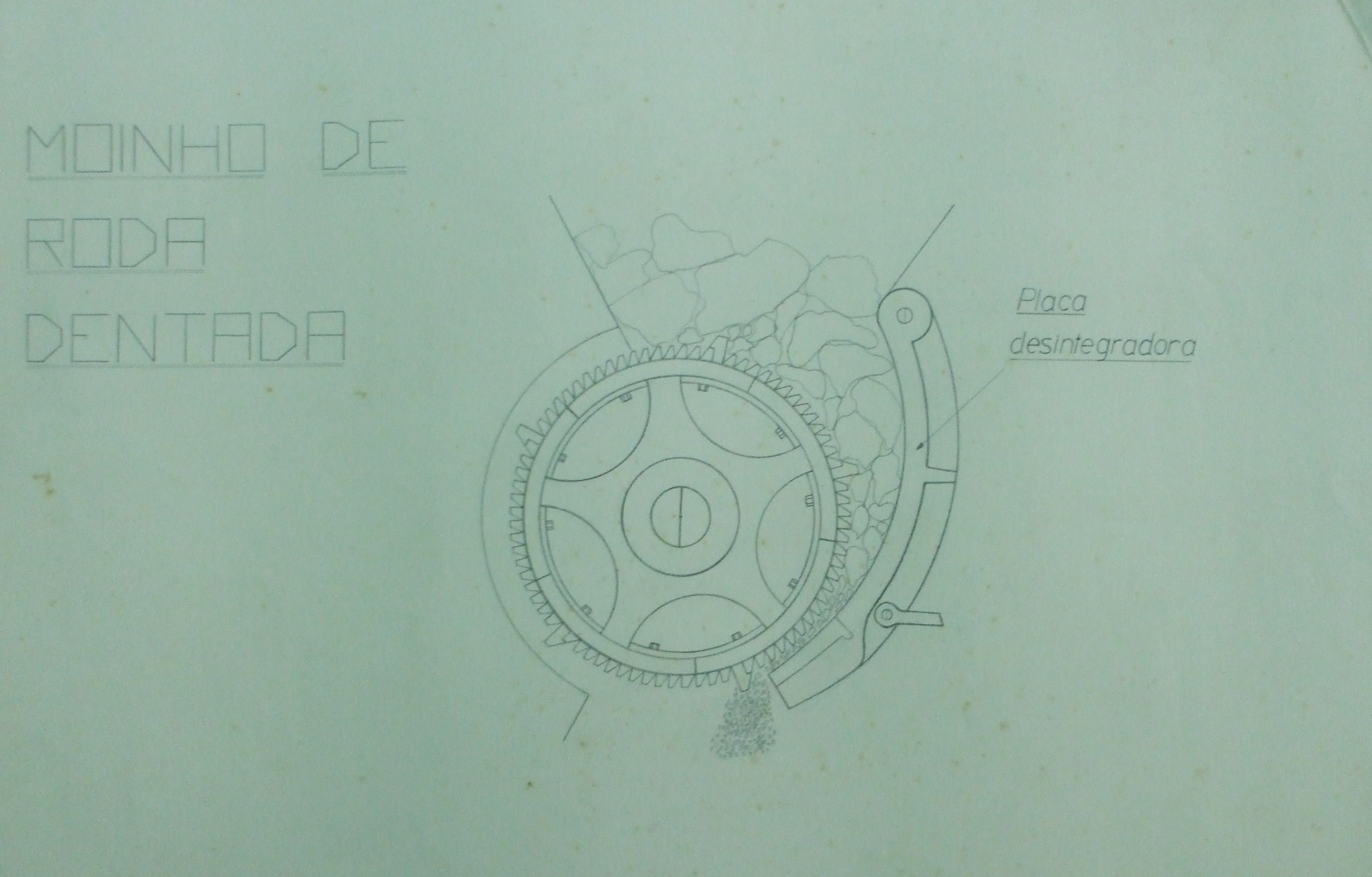 | Descrição: | O trabalho representa um moinho de roda dentada. No desenho visualiza-se a roda dentada e os materiais a serem triturados. |