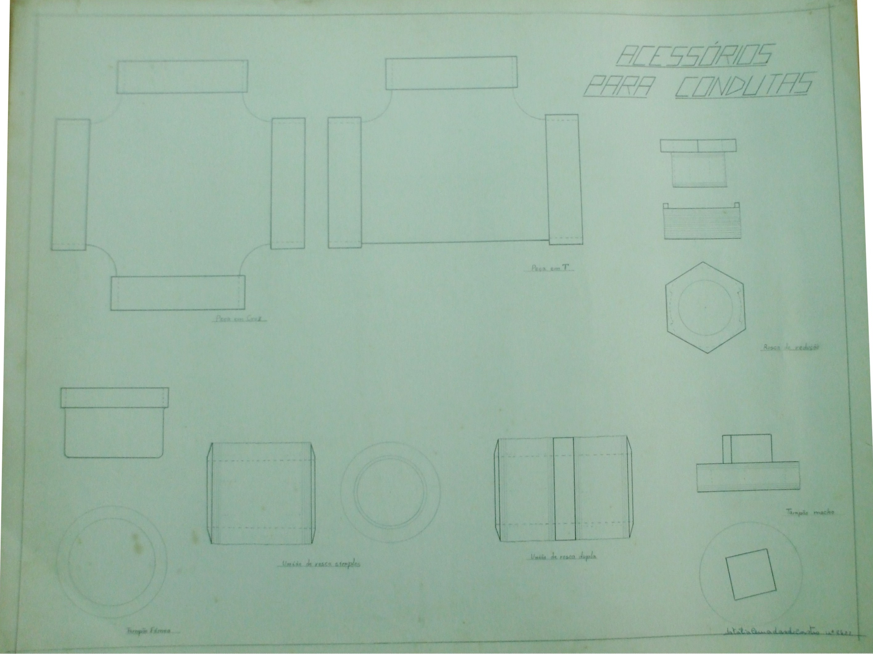 | Descrição: | O trabalho contém doze desenhos que representam acessórios para condutas. Estes desenhos representam: uma peça em Cruz; uma peça em T; Rosca de redução; Tampão Macho; Tampão Fêmea; União de rasca simples e União de rosca dupla. |