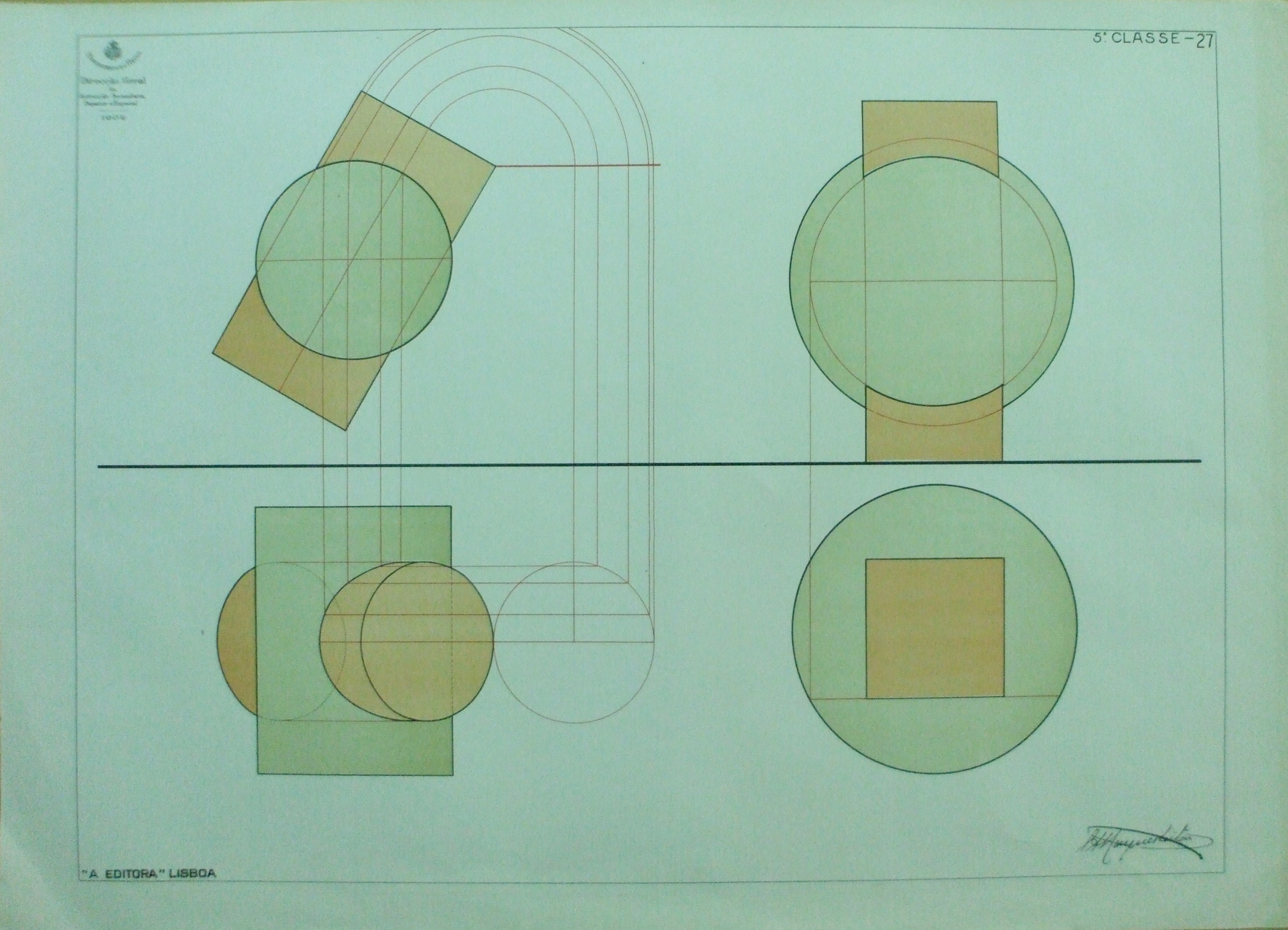 | Observações: | A estampa contém as seguintes informações: No canto superior esquerdo: Imagem do Brasão de Portugal "Ministério do Reino; Direcção Geral da Instrucção Secundária, Superior e Especial; 1909" No canto inferior esquerdo: "A EDITORA" LISBOA No canto superior direito: "5ª Classe -27" No canto inferior direito: Assinatura do Autor: C.A.Marques Leitão É atribuída o nº 27 à estampa, no entanto, no Livro de Desenho (Livro V), corresponde o desenho do lado esquerdo ao n. 35 e o desenho do lado direito da estampa nº.36 ( ambos os desenhos têm o nr.1). |