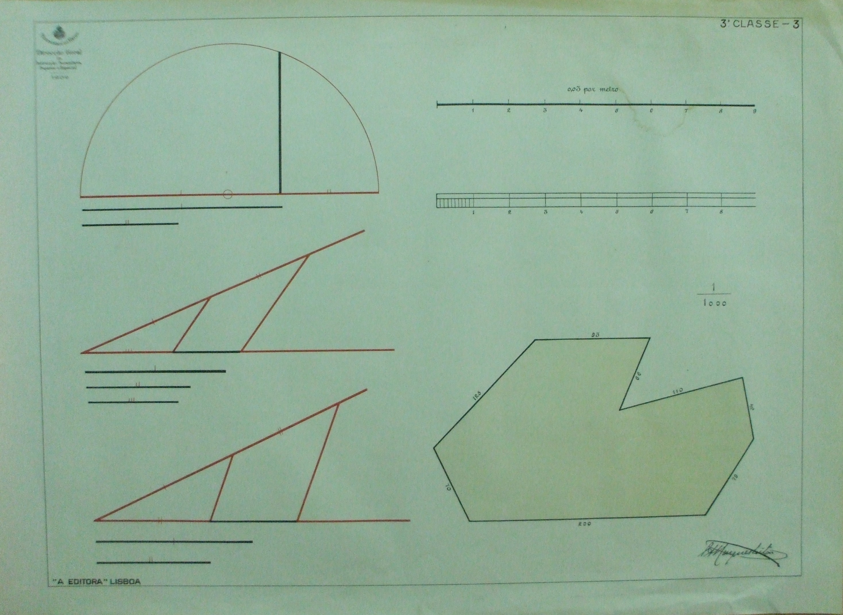 | Observações: | A estampa contém as seguintes informações: No canto superior esquerdo: Imagem do Brasão de Portugal "Ministério do Reino; Direcção Geral da Instrucção Secundária, Superior e Especial; 1909" No canto inferior esquerdo: "A EDITORA" LISBOA No canto superior direito: "3ª Classe - 3" No canto inferior direito: Assinatura do autor: C.A.Marques Leitão É atribuída o nº 3 à estampa e confere com o Livro de Desenho (Livro III). |