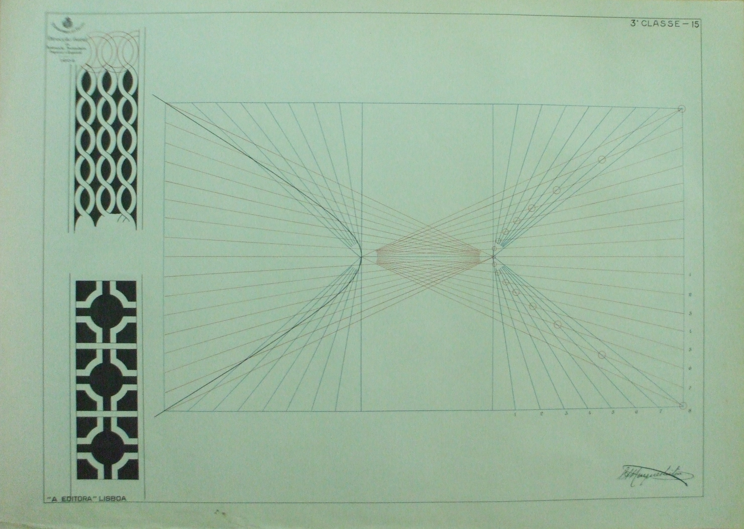 | Observações: | A estampa contém as seguintes informações: No canto superior esquerdo: Imagem do Brasão de Portugal "Ministério do Reino; Direcção Geral da Instrucção Secundária, Superior e Especial; 1909" No canto inferior esquerdo: "A EDITORA" LISBOA No canto superior direito: "3ª Classe - 15" No canto inferior direito: Assinatura do autor: C.A.Marques Leitão É atribuída o nº 15 à estampa e confere com o Livro de Desenho (Livro III). |