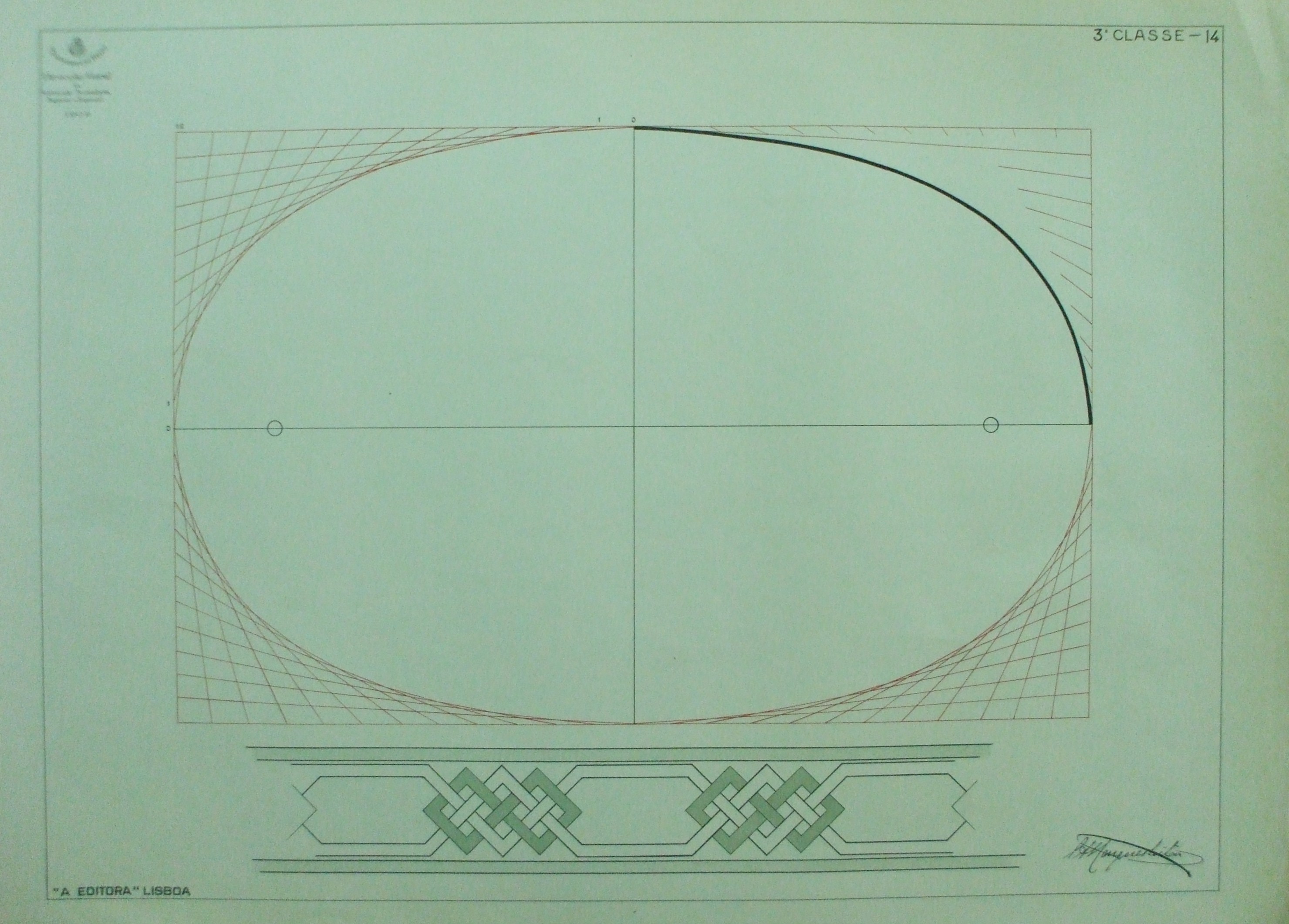 | Observações: | A estampa contém as seguintes informações: No canto superior esquerdo: Imagem do Brasão de Portugal "Ministério do Reino; Direcção Geral da Instrucção Secundária, Superior e Especial; 1909" No canto inferior esquerdo: "A EDITORA" LISBOA No canto superior direito: "3ª Classe - 14" No canto inferior direito: Assinatura do autor: C.A.Marques Leitão É atribuída o nº 14 à estampa e confere com o Livro de Desenho (Livro III). |